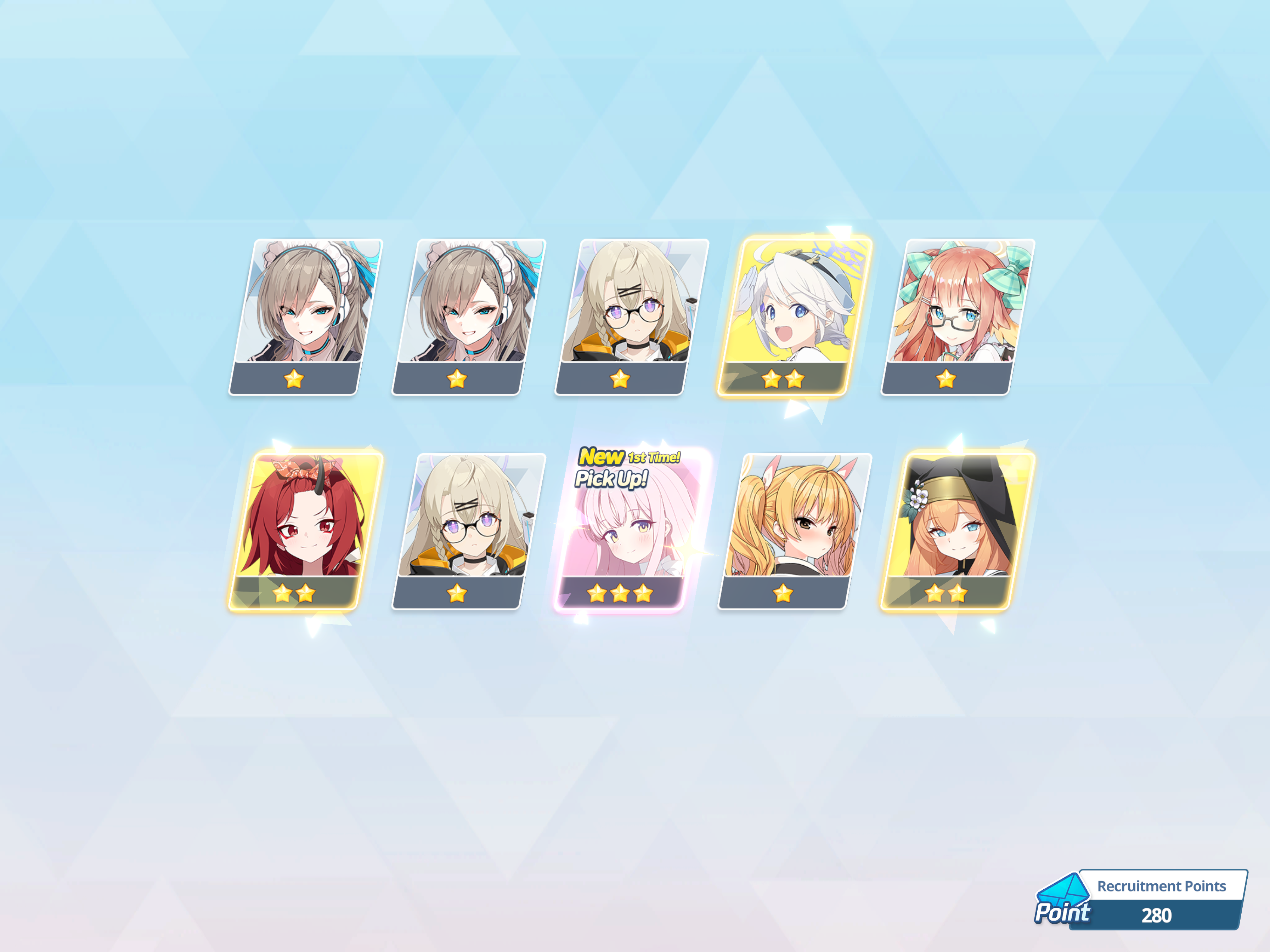 >>55115780812 new, 5 dupes. Got all that within 1 spark, including both S Nagi and SMika. Couldn’t be happier.