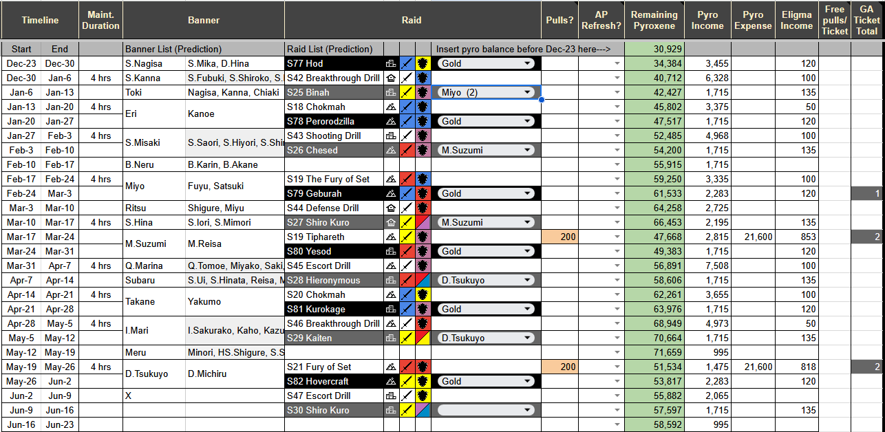 Previous Thread: >>551144102>Guides, Resources and useful links:https://rentry.org/bagguides>/bag/Circles/Clubs/Friends:https://rentry.org/holdingthebag>4koma, Manga, Side Content, PVs & Shortshttps://rentry.org/bacontent>>(JP) – JST>Banners:>12/24 After Maint – 1/17 10:59Tsukuyo (Dress)Michiru (Dress)>News:5th Anniversary Website: https://5th-anniversary.bluearchive.jpPatch notes: https://bluearchive.jp/news/newsJump/609>Events:Balancing Schale's Books with the General Student Council – 12/17 11:00 – 12/24 10:59An Unconcealed Path: Fashion Show Escort Mission! – 12/24 After Maint – 1/17 10:59>Content:Total Assault: Hovercraft (Field) – 12/31 11:00 – 1/7 3:59Limit Break Assault: The Fury of Set (Field – w/Light Armor) – 12/25 11:00 – 1/20 3:592x Commission – 12/17 4:00 – 12/24 3:592x Bounty – 12/24 4:00 – 12/31 3:592x Account EXP – 12/27 4:00 – 12/29 3:592x Normal/Lesson – 11/26 4:00 – 12/3 3:59>>(GLOBAL) – UTC>Banners:>12/23 (Tue) 2:00 – 12/30 (Tue) 1:59Nagisa (Swimsuit) (3* Limited)Mika (Swimsuit) (3* Limited)Hina (Dress) (3* – Limited – Rerun)Ichika (Swimsuit – Welfare)>News:Patch notes: https://forum.nexon.com/bluearchive-en/board_view?thread=3302503Roadmap: https://bluearchive.nexon.com/events/2025/12/4th>Events:Summer Sky's Promise – 12/16 After Maint – 12/30 1:59100-Free Recruitment Event: https://forum.nexon.com/bluearchive-en/board_view?thread=3302497Teatime on the Beach: https://bluearchive.nexon.com/events/2025/12/teapartyMy Office: https://bluearchive.nexon.com/user/myofficeSpecial Survey: https://forms.gle/4DaM3bvLkqAkvX7q9>Content:Total Assault: Hod (Urban) – 12/23 2:00 – 12/29 18:59Limit Break Assault: Tiphareth (Indoor – w/Heavy Armor) – 12/17 2:00 – 1/12 18:593x Hard – 12/26 19:00 – 12/29 18:593x Bounty/Scrimmage – 12/29 19:00 – 1/5 18:593x Normal – 12/22 19:00 – 12/26 18:592x Account EXP – 12/26 19:00 – 12/28 18:59