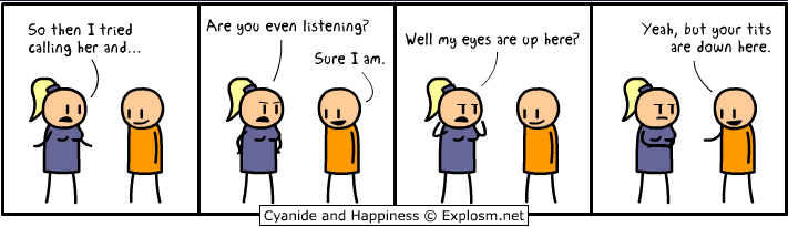 Eyes up here, dumbass.