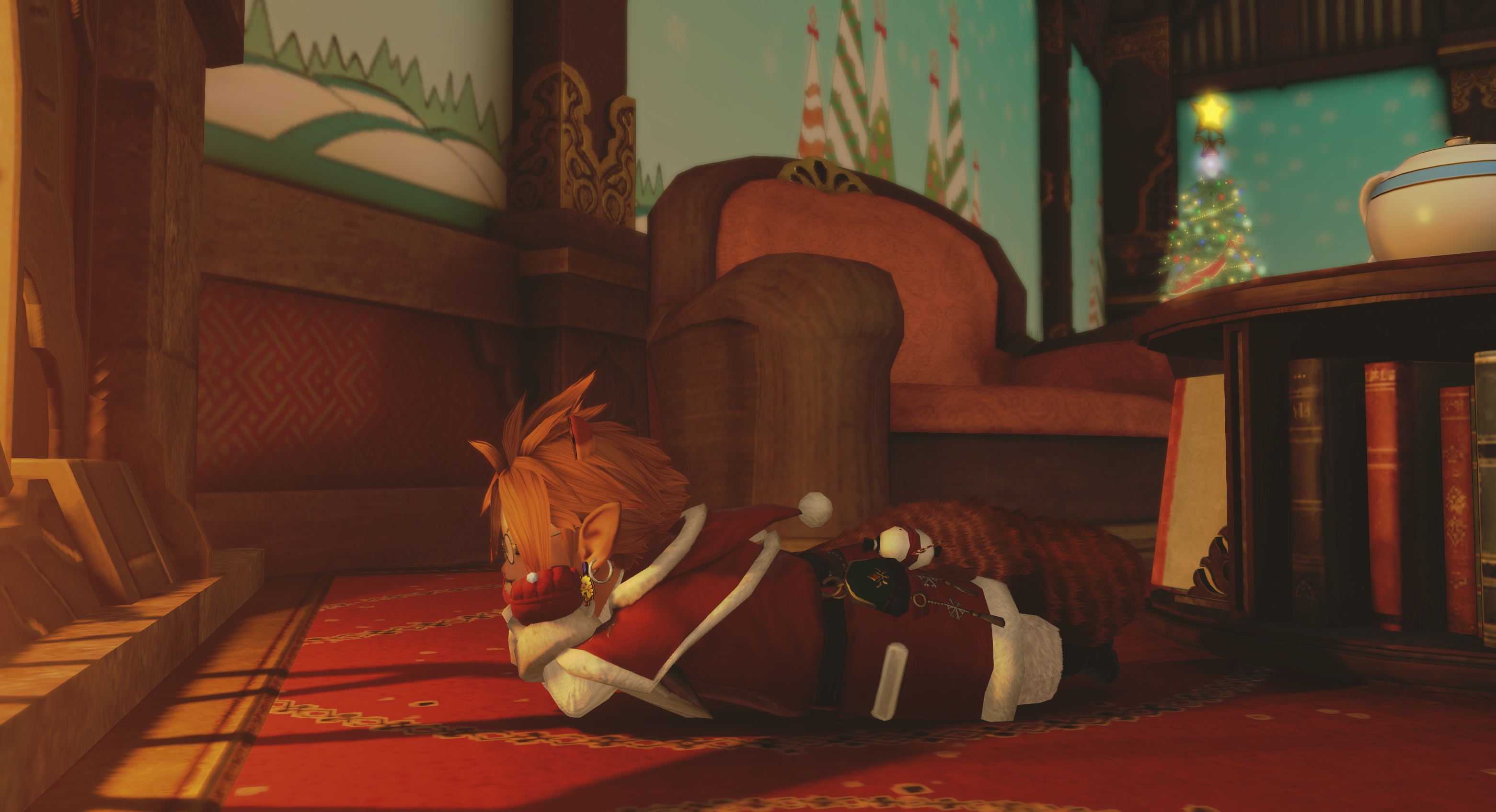 >grabs your lala>put you on the top of the Christmas treethere decorations done