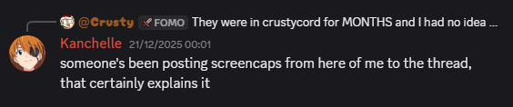 >this person is a schizo>"no that person isnt a schizo, i cant find mentions of them in a random discord!"its all so tiresome