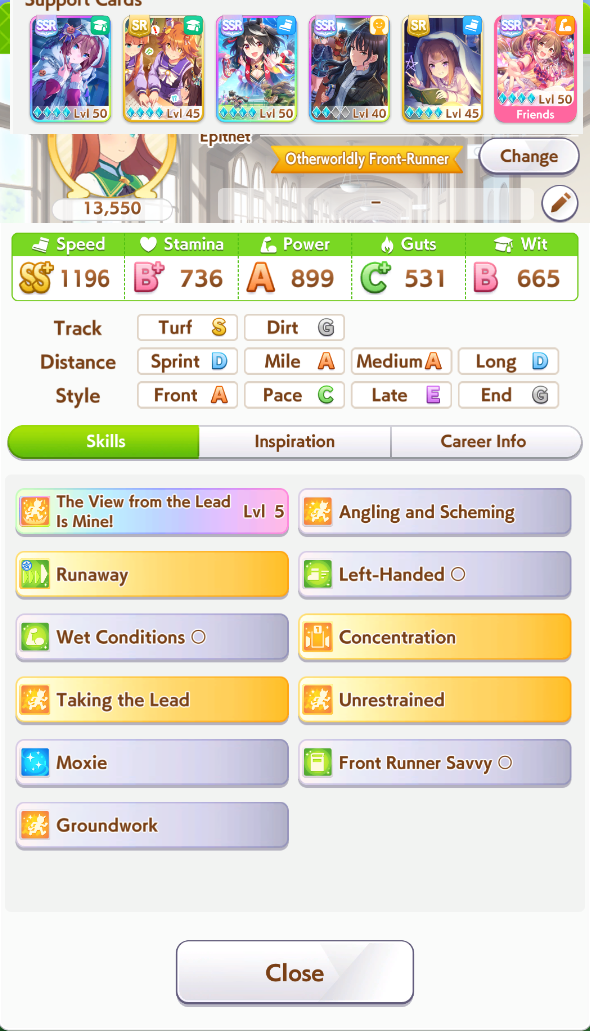 >>551176153Im not confident in low wit and high pow, Most of the Suzukas I face that curbstomp everyone have 950 stamina and 700+ wit with no recovery.