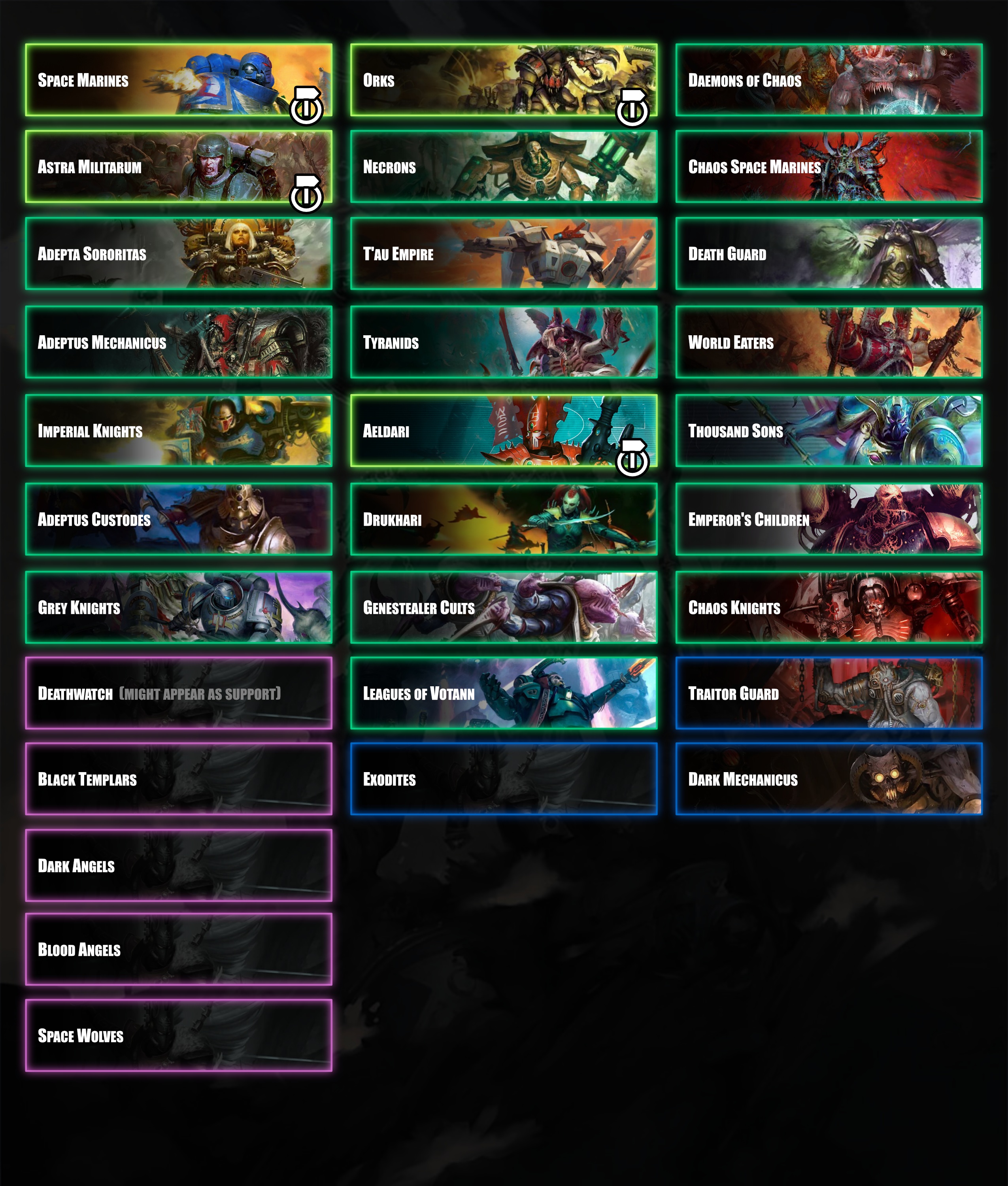Total War Warhammer 40,000 FAQ: https://store.steampowered.com/news/app/4199910/view/655966683127611597