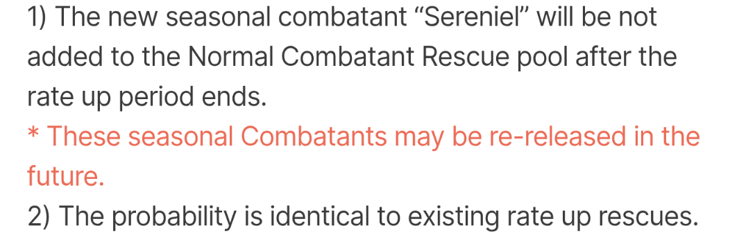 >When acquiring any duplicate 5 Combatant after reaching the maximum acquisition limit, you will receive a new currency [Spectral Cube].>cubes can be used to get limitless duplicates of other 5* (other than limited characters)This is the most generous I have ever seen a gacha be. Yes, it will take a time, but at some point you will just get free dupes pretty regularly.