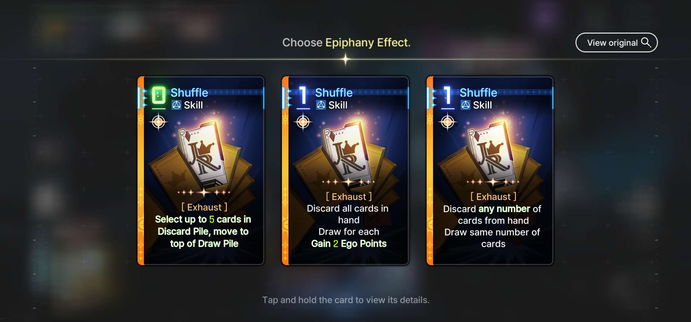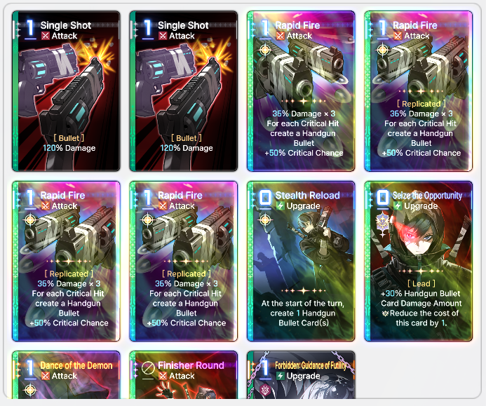>>551187839Based! Go full scorched earth! Film it and schizo post on X for posterity!>>551187981You farming this for the boss? The 0 cost one is the best. You don't want to discard cards. You want to use as many per turn as possible. Save this card for towards the end (turn 7+) when the boss has a lot of HP left and you just made him do the thought fragment thing and you've already used all your other upgrades.