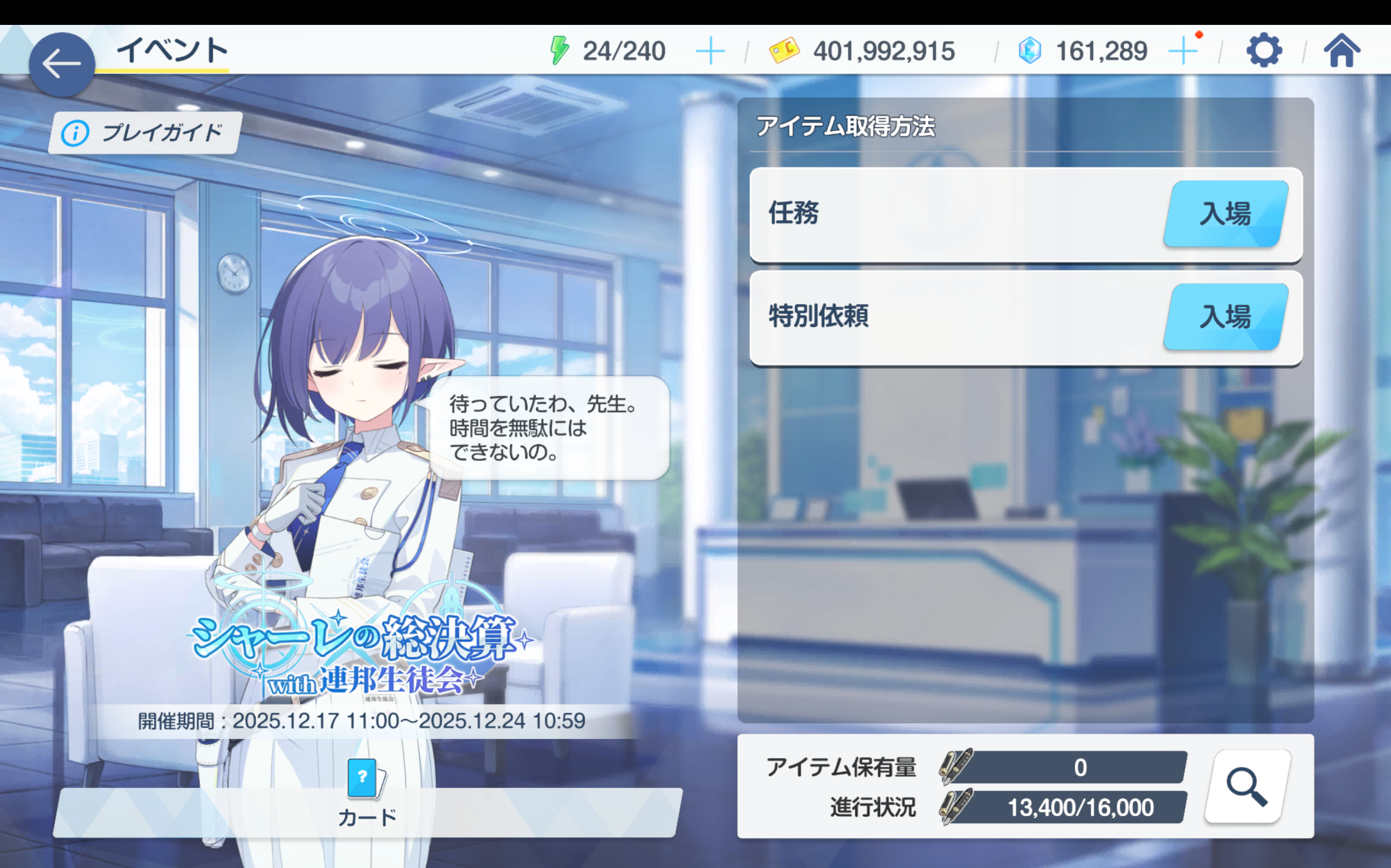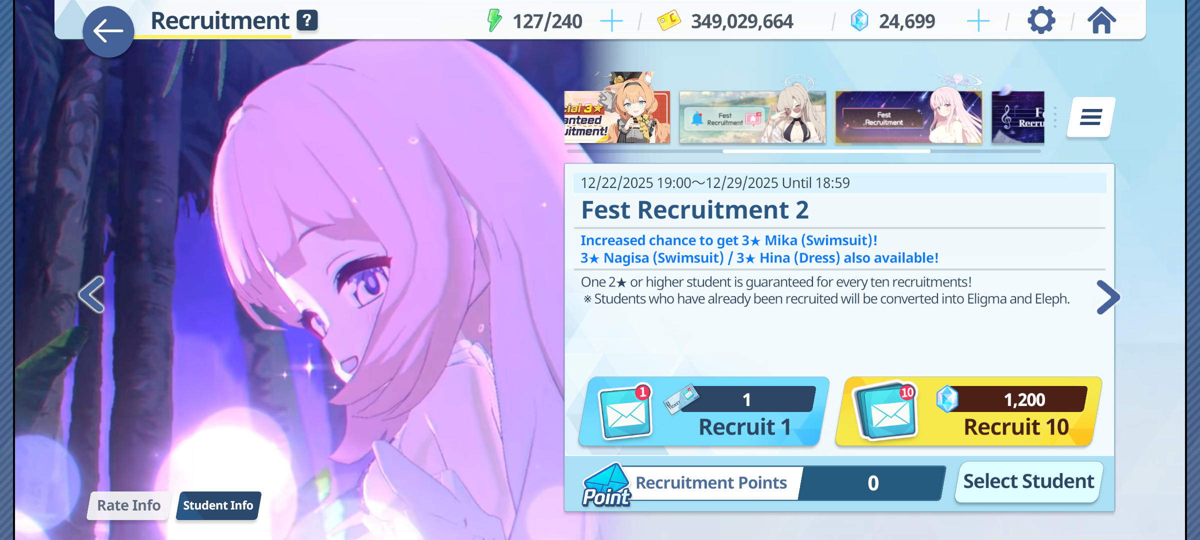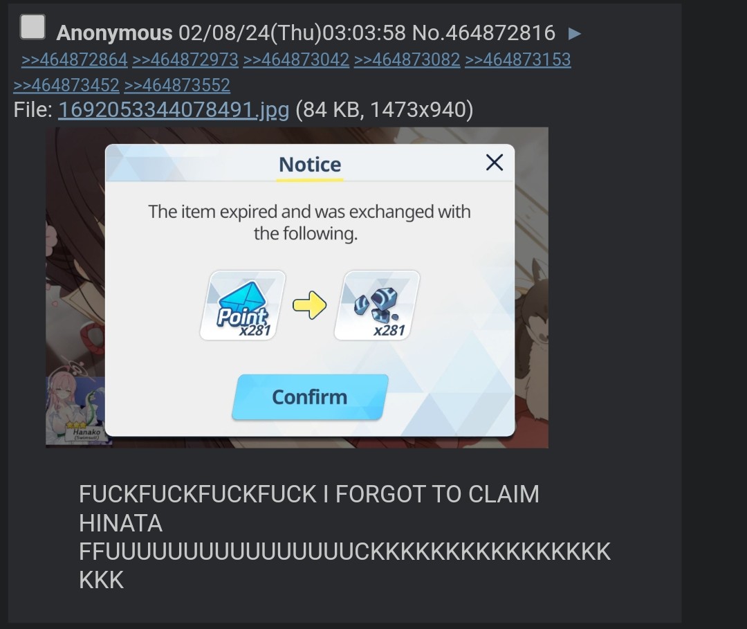 Previous Thread: >>551187576>Guides, Resources and useful links:https://rentry.org/bagguides>/bag/Circles/Clubs/Friends:https://rentry.org/holdingthebag>4koma, Manga, Side Content, PVs & Shortshttps://rentry.org/bacontent>>(JP) – JST>Banners:>12/24 After Maint – 1/17 10:59Tsukuyo (Dress)Michiru (Dress)>News:5th Anniversary Website: https://5th-anniversary.bluearchive.jpPatch notes: https://bluearchive.jp/news/newsJump/614>Events:An Unconcealed Path: Fashion Show Escort Mission! – 12/24 After Maint – 1/7 10:59>Content:Total Assault: Hovercraft (Field) – 12/31 11:00 – 1/7 3:59Limit Break Assault: The Fury of Set (Field – w/Light Armor) – 12/25 11:00 – 1/20 3:592x Bounty – 12/24 4:00 – 12/31 3:592x Account EXP – 12/27 4:00 – 12/29 3:592x Normal/Lesson – 12/31 4:00 – 1/7 3:592x Account EXP – 1/3 4:00 – 1/5 3:592x Hard – 1/7 4:00 – 1/14 3:592x Scrimmage/Commission – 1/14 4:00 – 1/20 3:59>>(GLOBAL) – UTC>Banners:>12/23 (Tue) 2:00 – 12/30 (Tue) 1:59Nagisa (Swimsuit) (3* Limited)Mika (Swimsuit) (3* Limited)Hina (Dress) (3* – Limited – Rerun)Ichika (Swimsuit – Welfare)>News:Patch notes: https://forum.nexon.com/bluearchive-en/board_view?thread=3302503Roadmap: https://bluearchive.nexon.com/events/2025/12/4th>Events:Summer Sky's Promise – 12/16 After Maint – 12/30 1:59Teatime on the Beach: https://bluearchive.nexon.com/events/2025/12/teapartyMy Office: https://bluearchive.nexon.com/user/myofficeSpecial Survey: https://forms.gle/4DaM3bvLkqAkvX7q9>Content:Total Assault: Hod (Urban) – 12/23 2:00 – 12/29 18:59Limit Break Assault: Tiphareth (Indoor – w/Heavy Armor) – 12/17 2:00 – 1/12 18:593x Normal – 12/22 19:00 – 12/26 18:592x Account EXP – 12/26 19:00 – 12/28 18:593x Hard – 12/26 19:00 – 12/29 18:593x Bounty/Scrimmage – 12/29 19:00 – 1/5 18:59