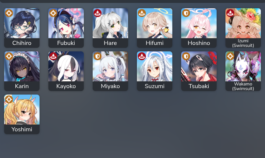 these are my students that "can CC"The only one I have built is Tsubaki, who should I dump books into and bring to 90 for HOD, or should I just be happy with gold again