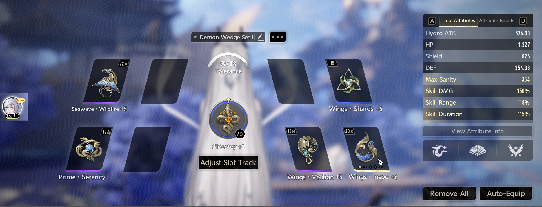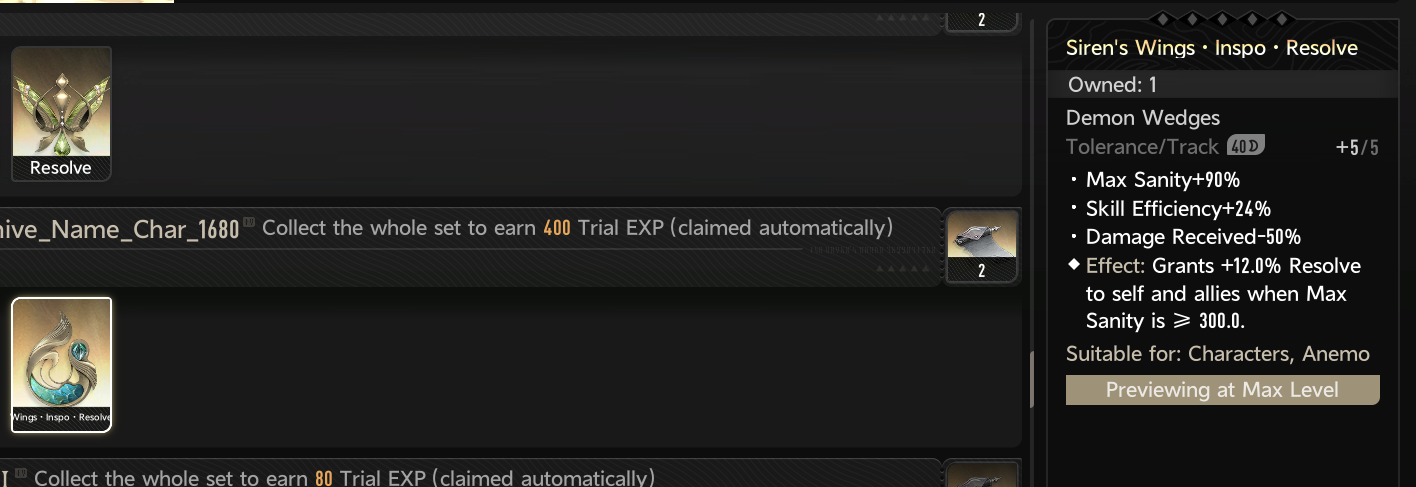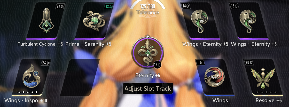 >>551294959Yeah the Tolerance one gives +12 already at +5 and like +26 at +10 which will take a long time to make but even at +5, 12 Resolve is huge. Wings Inspo Volition is the way to go on top of x4 gold Volition cause it seems that it scales better that way. My friend has a Psyche with +10 everything(except Prime cause lol that's not yet possible) and is basically a Psyche main and that's what he told me.