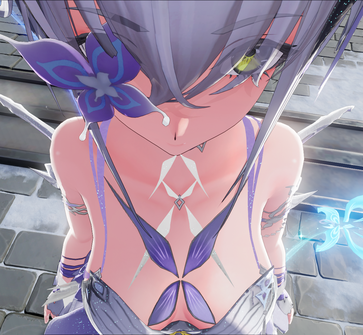 >>551298550>>551298576Yeah she wasn't wearing any on launch, they nerfed her. Take a look from the same angle as this image and you'll see the difference.