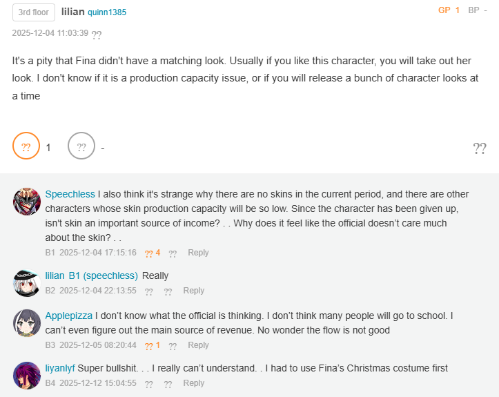 >>551294867You're comparing a player doing dailies for 6 weeks and efficiently swiping $5 to have roughly enough rolls to keep up with the new characters. How much would it cost to get multiple/maxed copies of them? That's closer to the comparison for thoughts.In 6 weeks of DNA, a player would have the opportunity to get a minimum I1 new character if they clear the theater. If they got walled, they would have 2 more weeks of weekly bosses for ~30 thoughts/week on average. The target market for thoughts aren't the budget players that just want to unlock the character, it's for people that want to go I3+ on it ASAP. >Well yeah gacha are games you're supposed to play regularly. If you don't, you will miss stuff.Okay, so then how does someone go about getting most/all of the characters in the game after their long break? Or what if they didn't even start playing until over a year after launch? I can't see this as a good defence of gachas if "being able to keep up" really means you need to play continuously and deciding skip some new characters in order to acquire an old one.