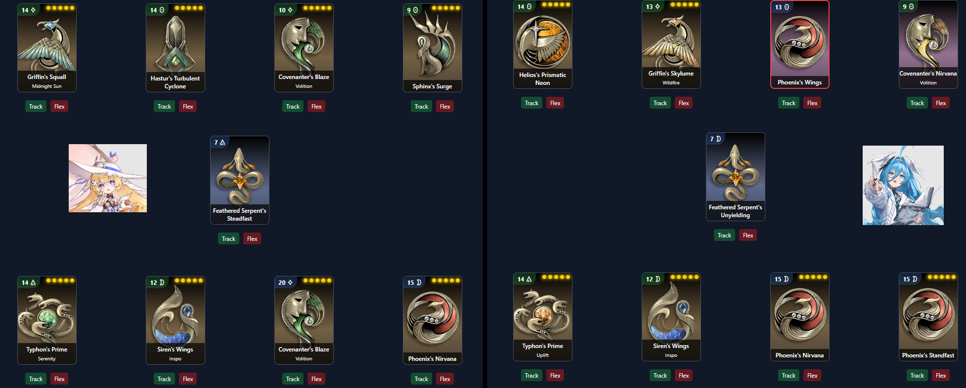 >>551294201Why not just get them? The feathered serpent ones at least. It's a direct drop for basically free stats. Changeling resolve I can at least understand if you don't want to farm some blue wedges.Not sure what else I can say since I'm not having this issue. Maybe try Wanewraith equipped on Truffle since her AI is supposedly better with melee. If you are at 75%+ hp at the start of the boss fight or can quickly heal to it, you can press esc-> start over to reset cds so you can activate Psyche's passive.I wouldn't know if you could be doing something better or if it's simply not high enough stats.