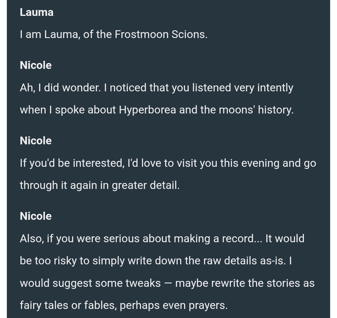 >>551271680Yeah I misremembered, it was actually Nicole in the Nod-Krai archon quest, not Alice.