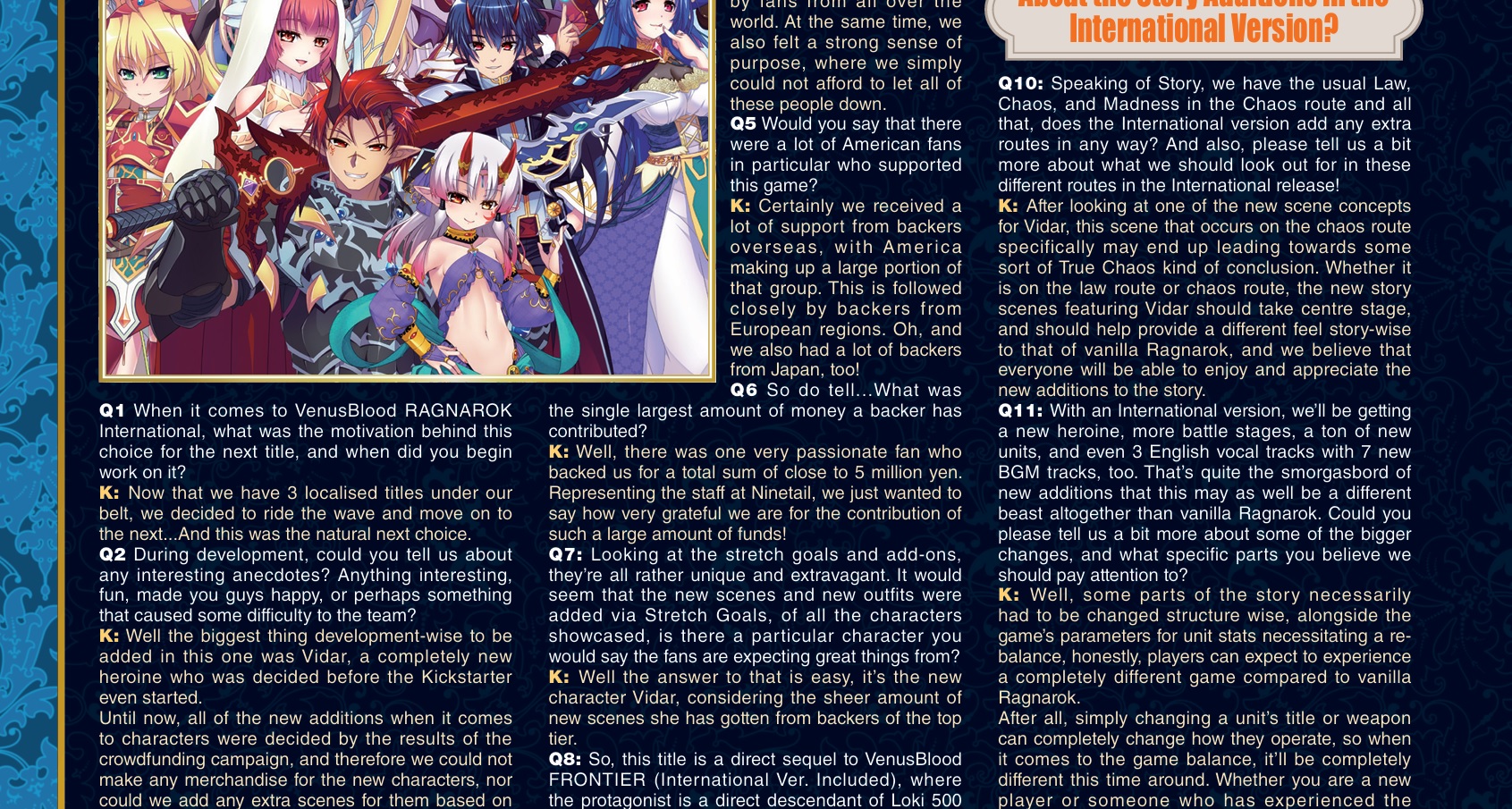 >>551435326What do you mean extras?If you mean in the game itself, they literally say that the game effectively has 50% more H-content compared to vanilla Ragnarok. If you mean for the artbook alone, then there's the concept sketches for all the new stuff. And collection of the usual specialized store bonus art.>>551435552This new one is explicitly a sequel to an earlier VB game, but otherwise, all other games are their own thing.
