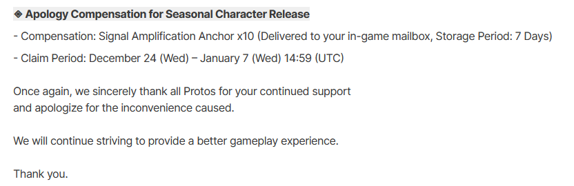 >>551274976No retard-kun, they're apologizing for having previously said there wouldn't be any limited characters and then Sereniel turned out to be one so they're handing out apoloanchors.