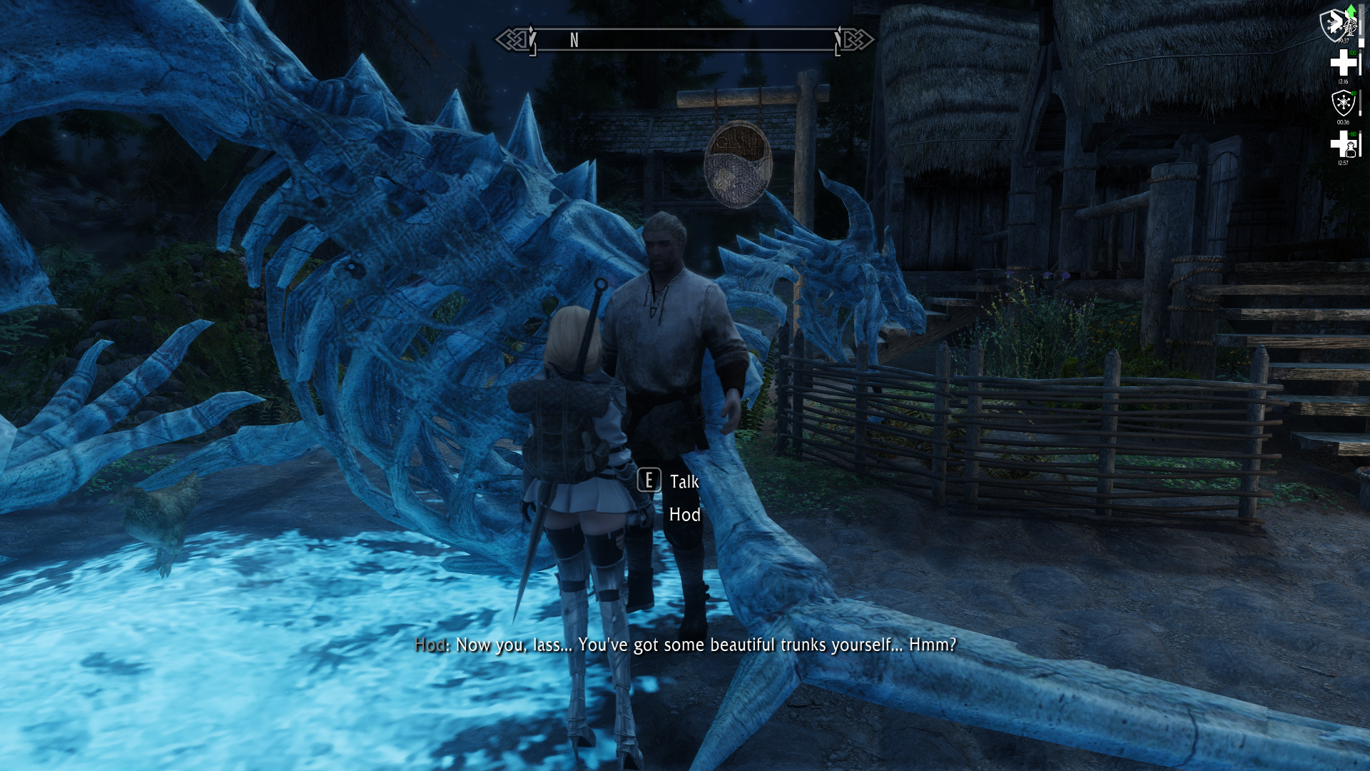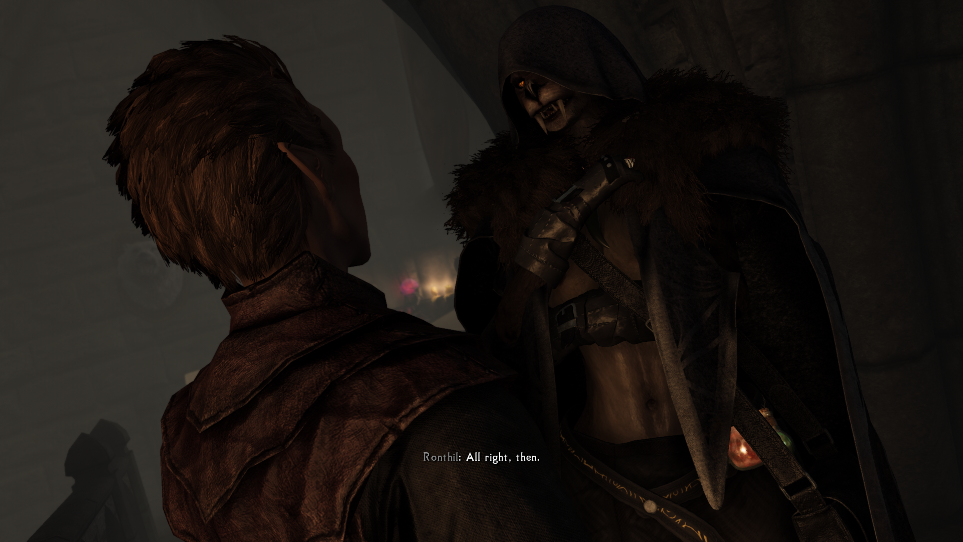 anyone with femalenord voice can say "what are you doing, s'wit?" if you have a negative relationship