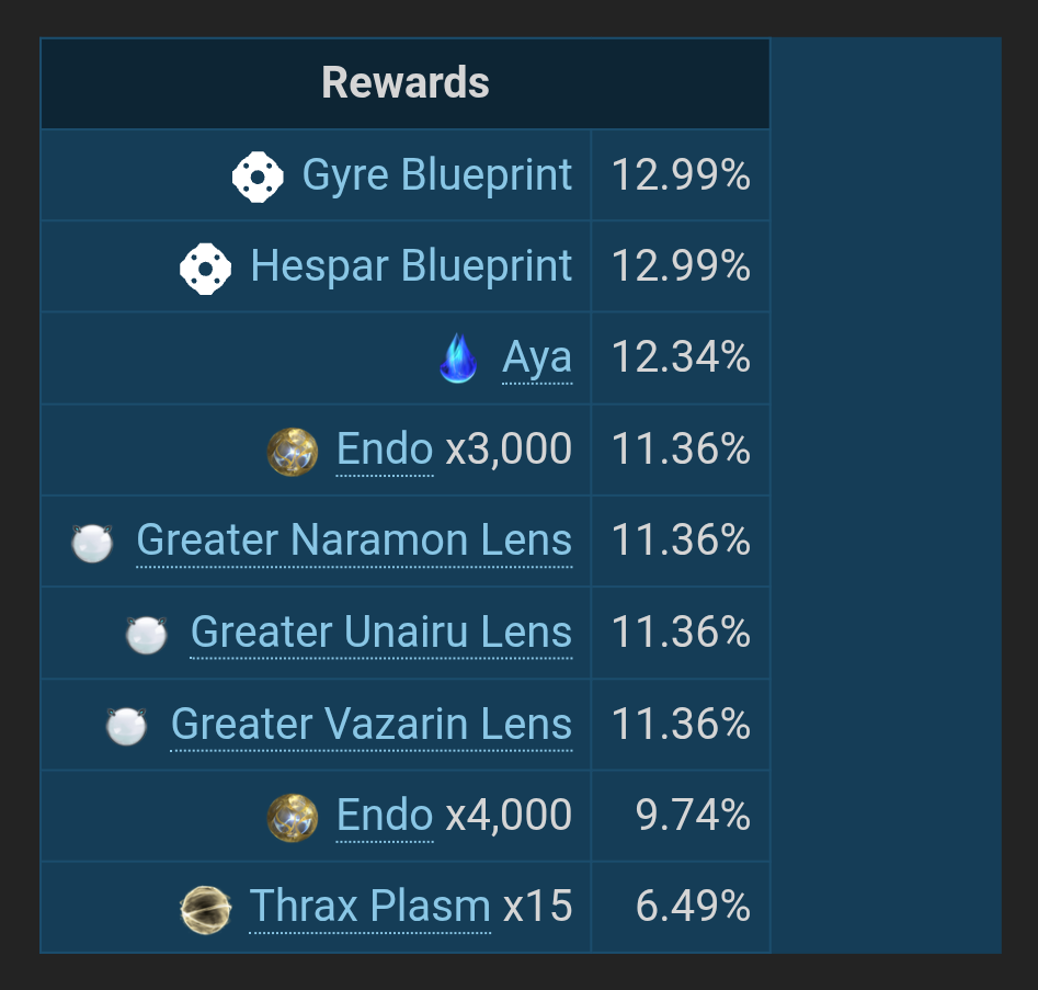 >>551338385https://warframe.com/droptables