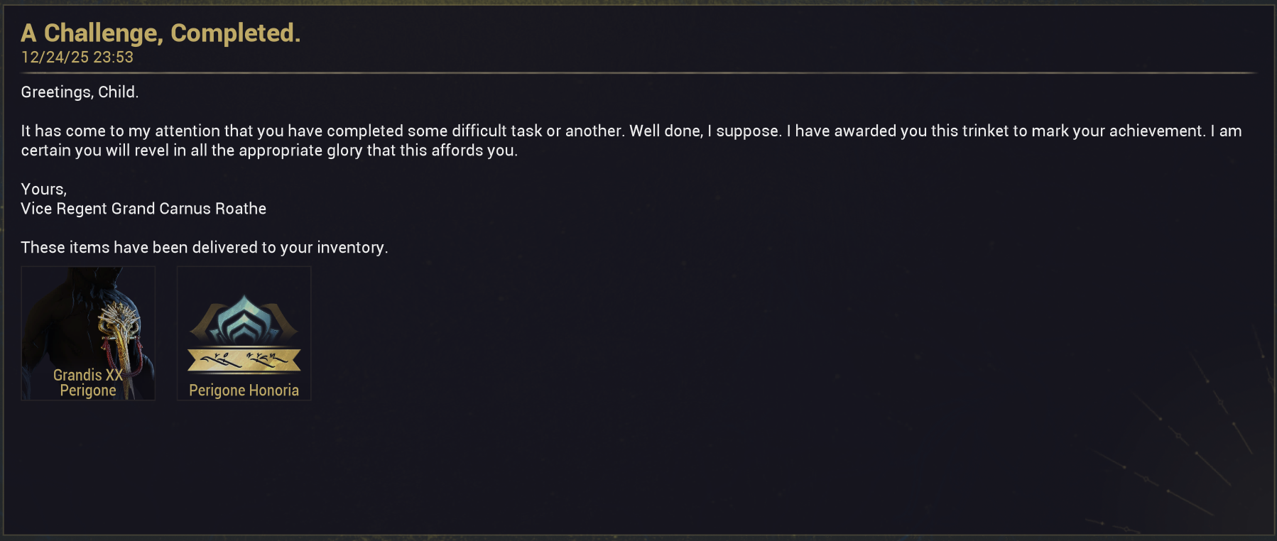 Christmas Eve editionPrevious thread >>551234173Buy Platehttps://vocaroo.com/1jJoefGnh5lT >READ the Pastebin and Wiki BEFORE asking questionsOfficial Wiki: https://wiki.warframe.com/Useful Links: https://pastebin.com/8y5vLBY5 >/wfg/ Alliance4Funbros: contact ddaavveeFTW>/wfg/ ClansOblivion: contact Wxu. or Geogre512Warbros: contact KillsawCURRENT UPDATE: The Old Peace: Hotfix 41.0.5https://www.warframe.com/patch-notes/pc/41-0-5CURRENT PRIME ACCESS: Gyre Primehttps://www.warframe.com/prime-accessCURRENT EVENT: Tennobaum 2025 and Operation: Blood of Peritahttps://www.warframe.com/tennobaumhttps://www.warframe.com/news/operation-blood-of-perita