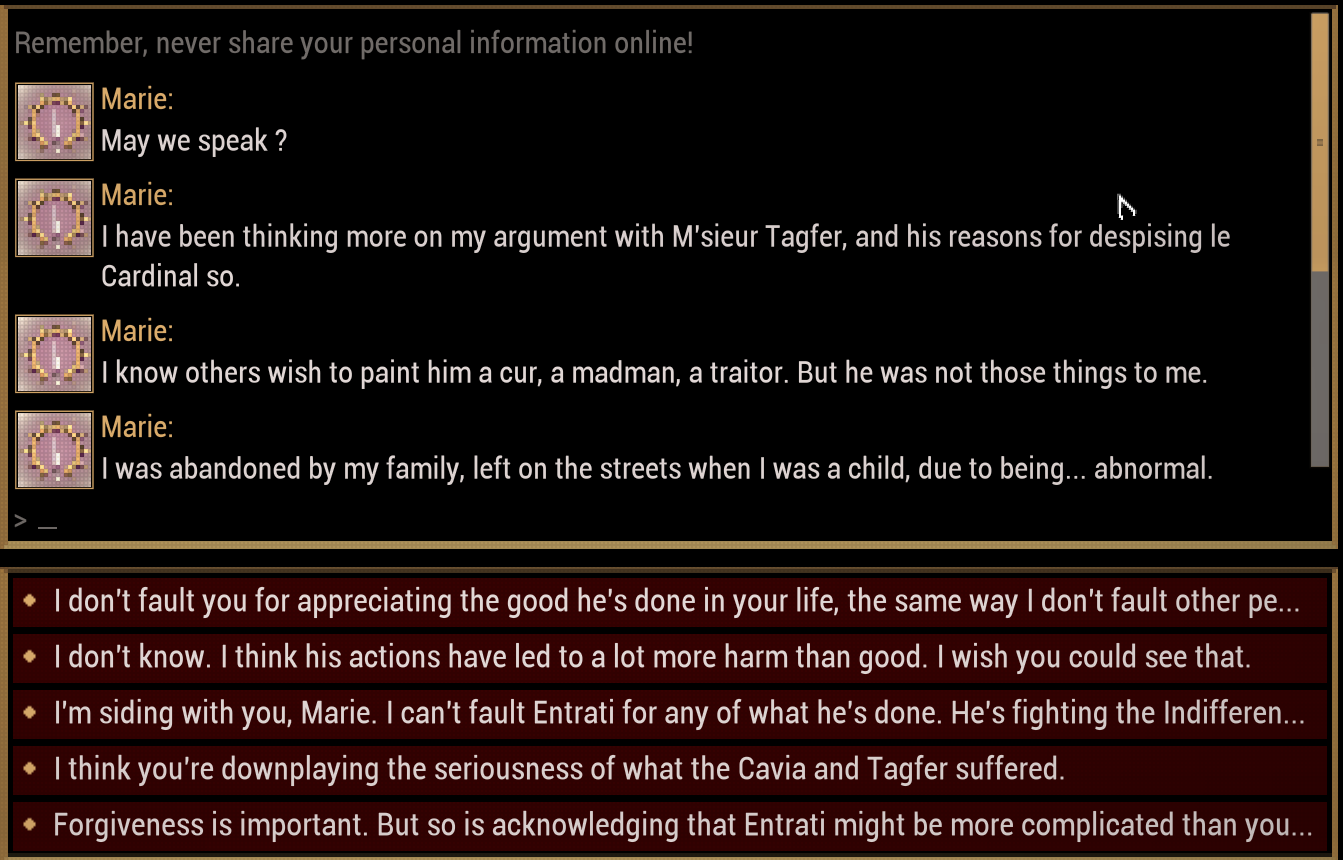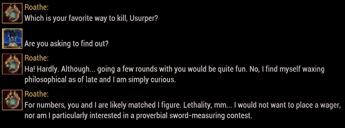 >>551378689Forgot to show some of my dudesArbiters can generate with extremely long names, I snagged one that is so long he doesn't have the callout dialog panel on the right side because the game can't fit the text.