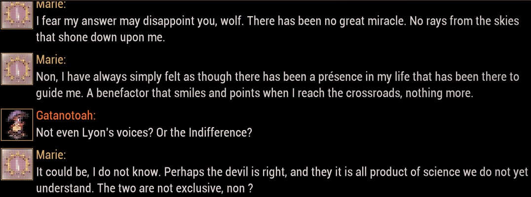 OhOhhhhOhhhh that explains why she seemed to be so smart in spite of the way she talked sometimes. So she was actually some jacobin-equivalent and got proper education till some point. I found odd the more I talked with Marie the more bipolar her wisdom seemed.
