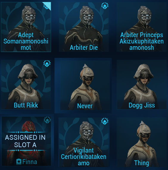 >>551338282>InarosHe looks cool but what makes you suggest him? Why is he gonna get nerfed when they already hit the arcane. >>551338385>styanaxI'm waiting for the prime to grab him, I'm still another week off being able to get him from Kahl missions.>>551338432I said male frames.