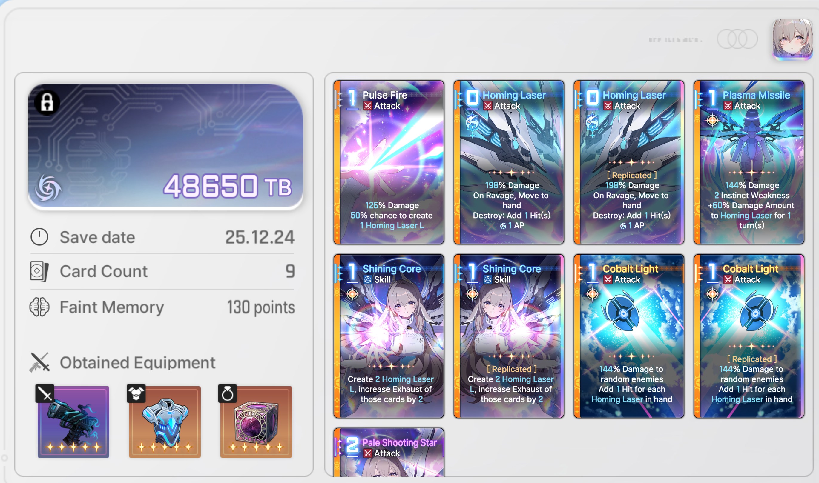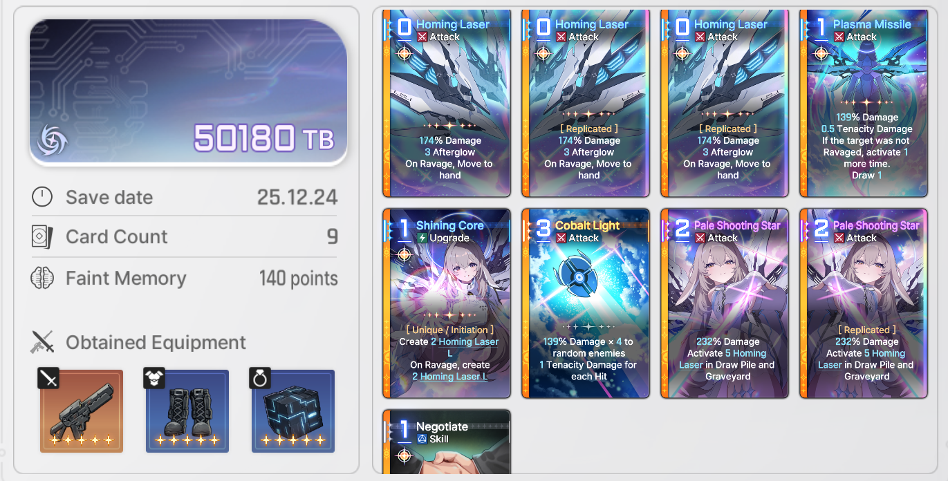 I keep making Laser L and doing x9 Cobalt Light.