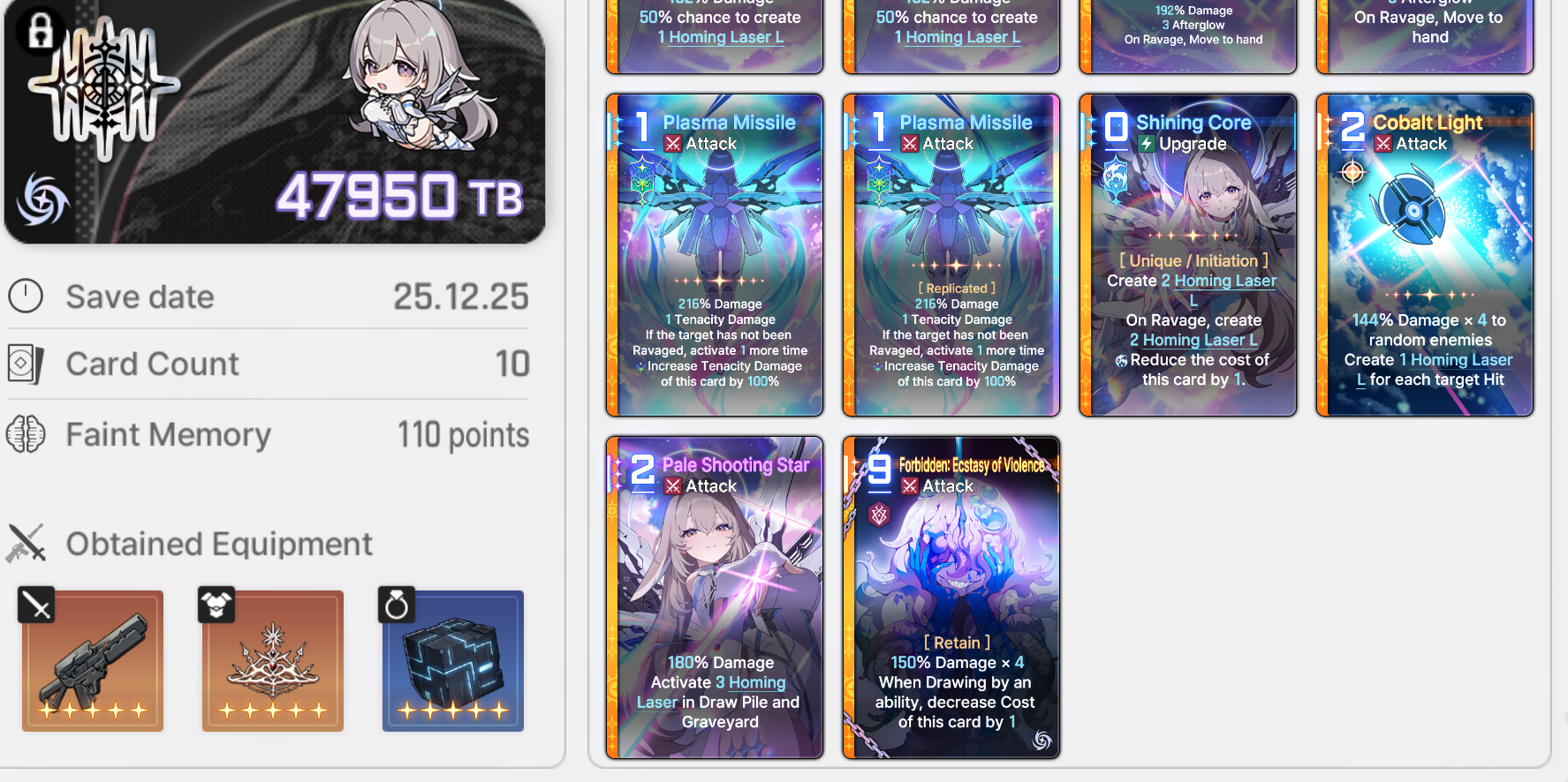 Sereniel has multiple viable builds, she's a versatile characterLeft is #1 in the world, right is #2Completely different decks aside from Plasma missile that everyone agrees it should be that one