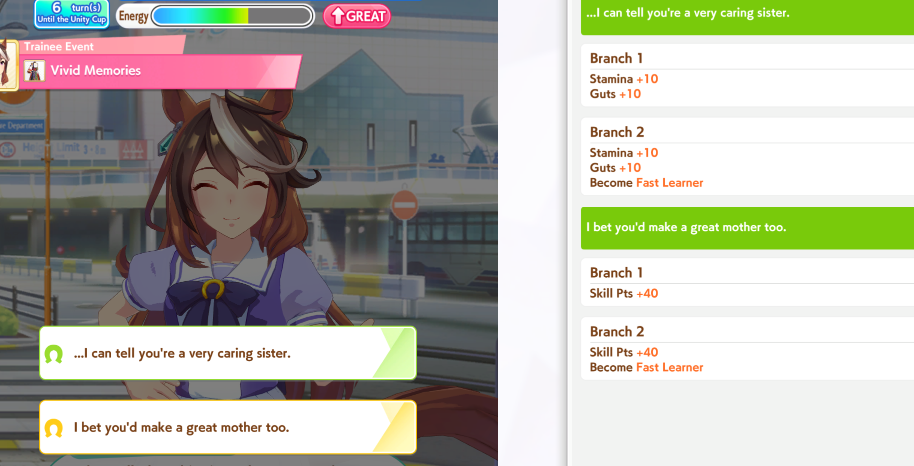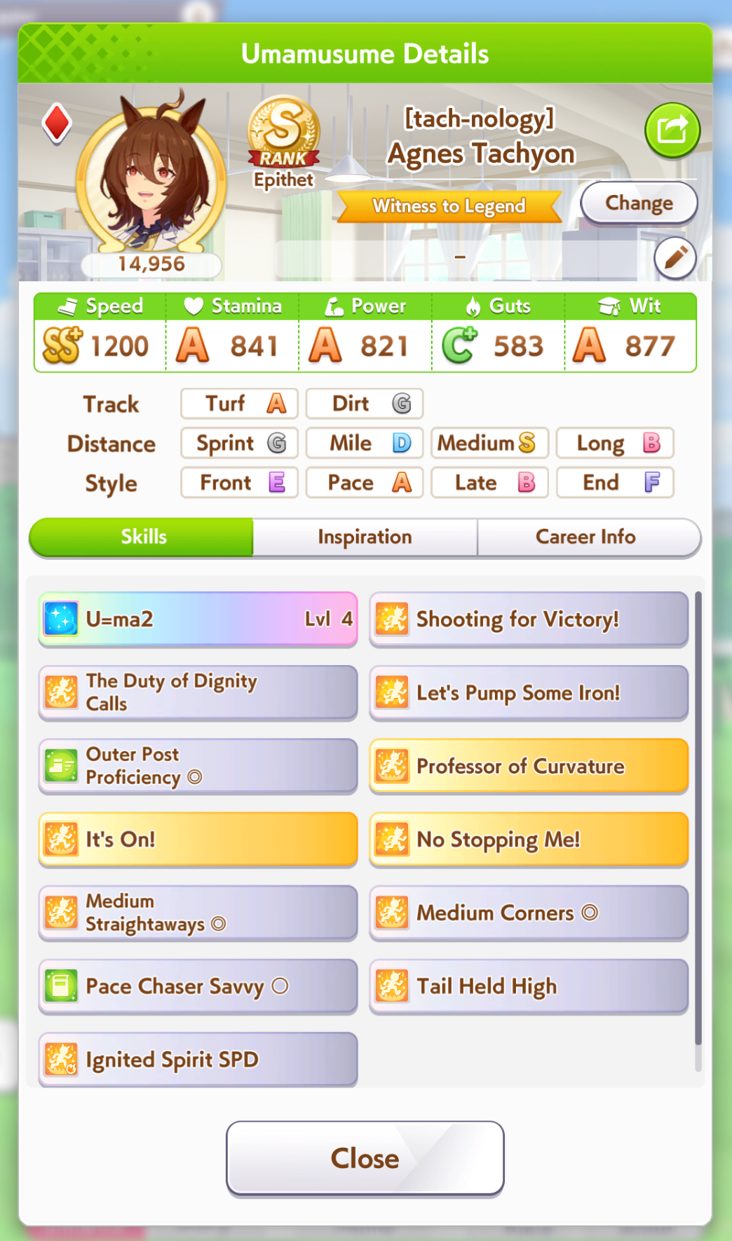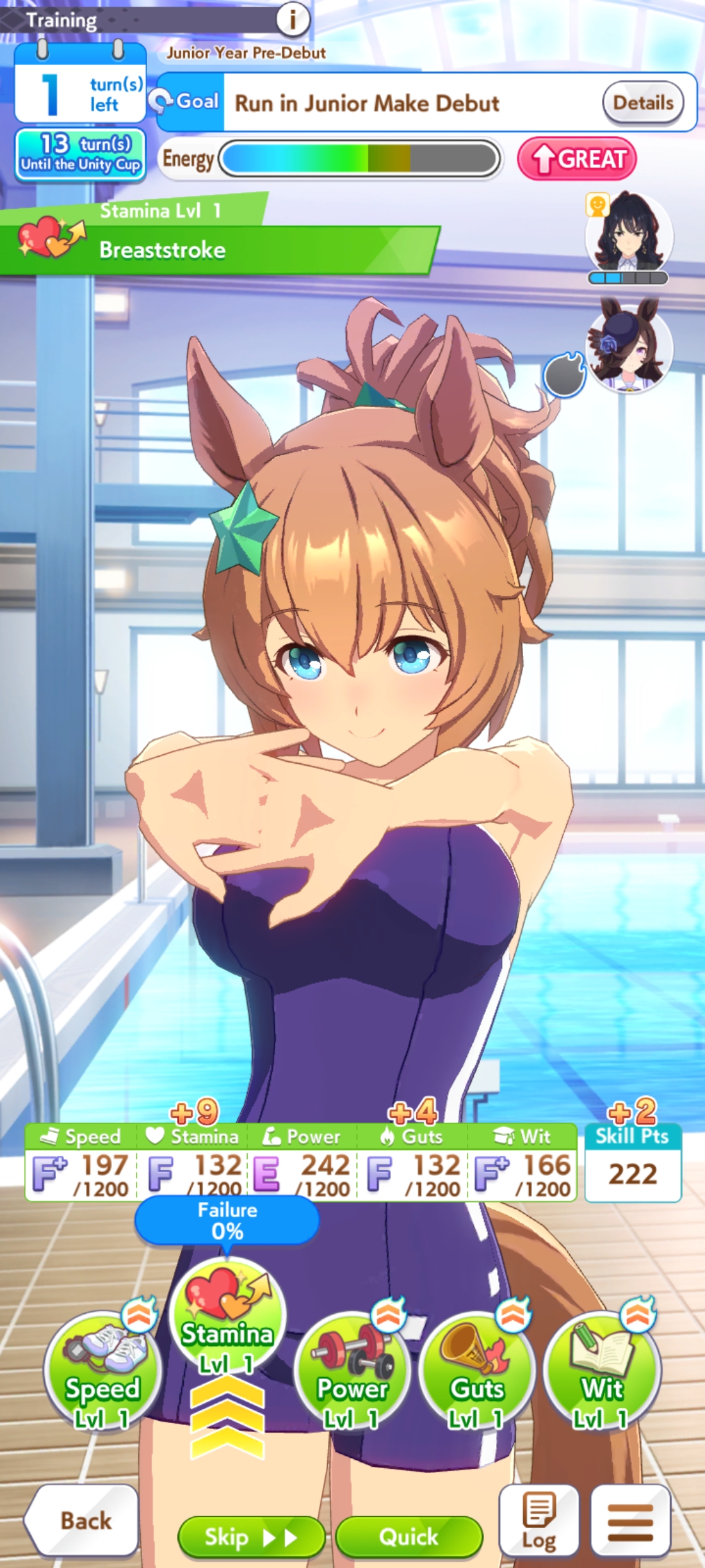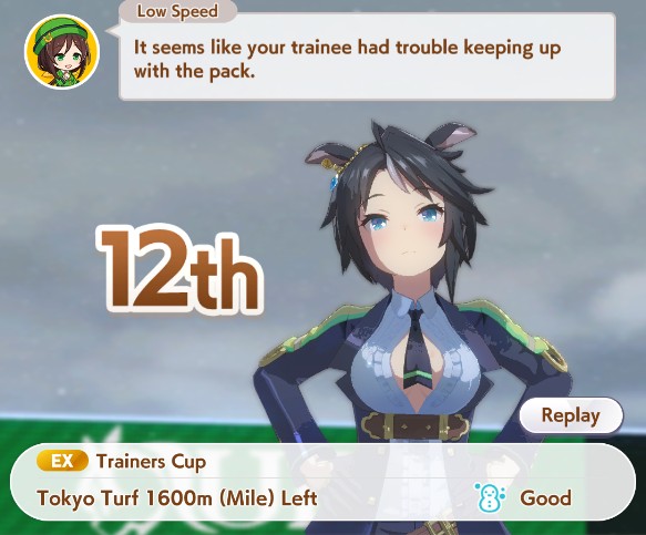 >>551358482She came 12th. Don't worry about stats, races are mostly down to the luck of skill procs.