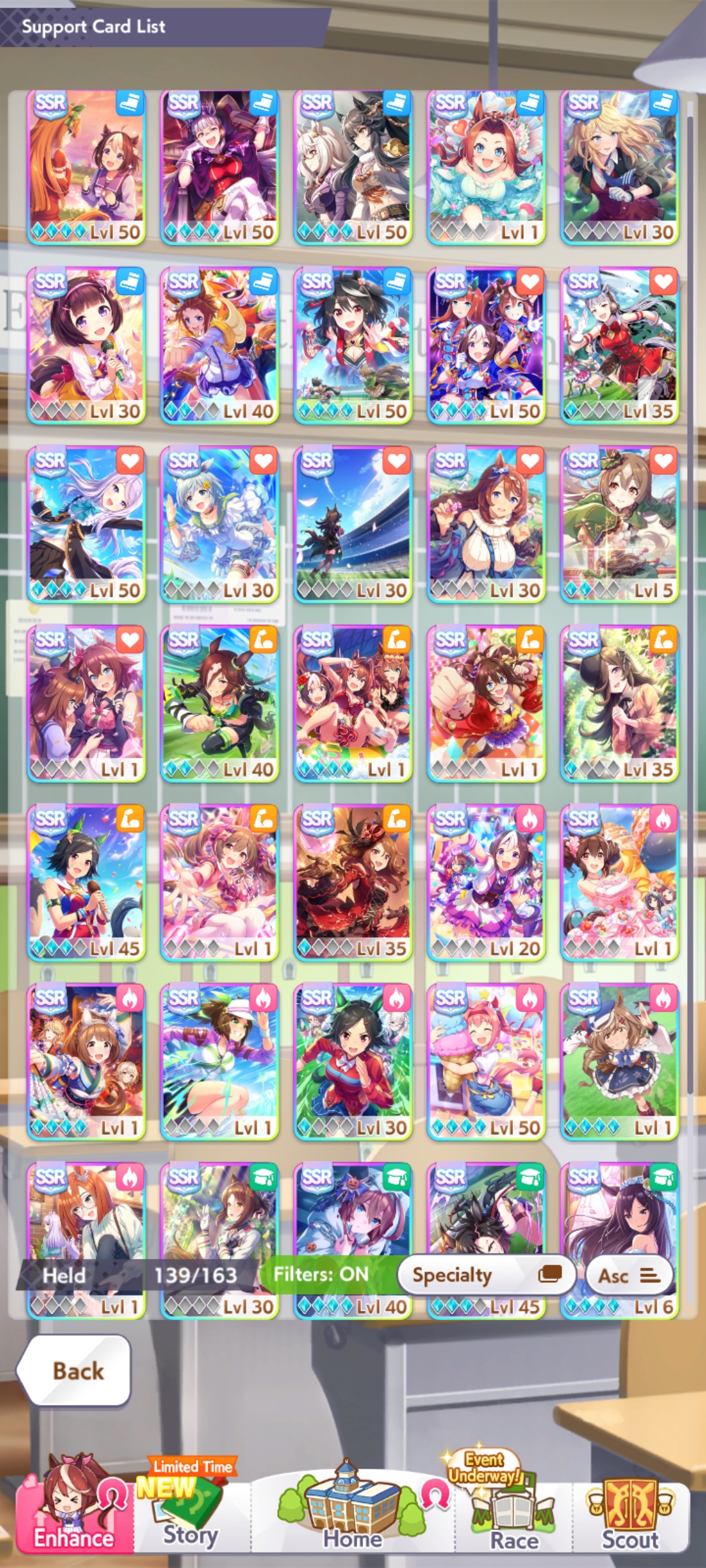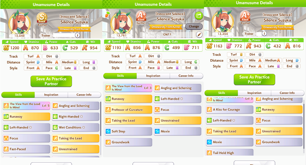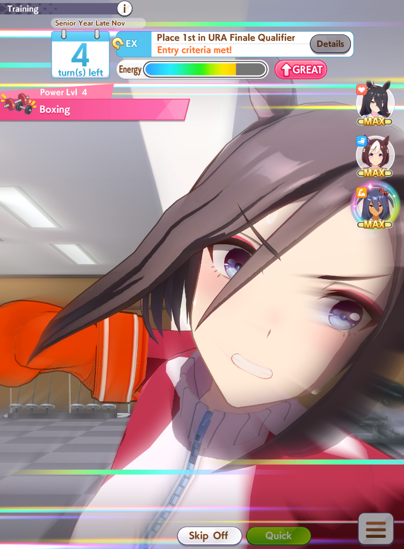 Got my ass beat in CM rooms. My paces and fronts don't look too bad but I can't compete with people somehow getting 1200 speed and 900 stam/pwr/wit with 3 wit cards and 2 speed cards. Shit is crazy.