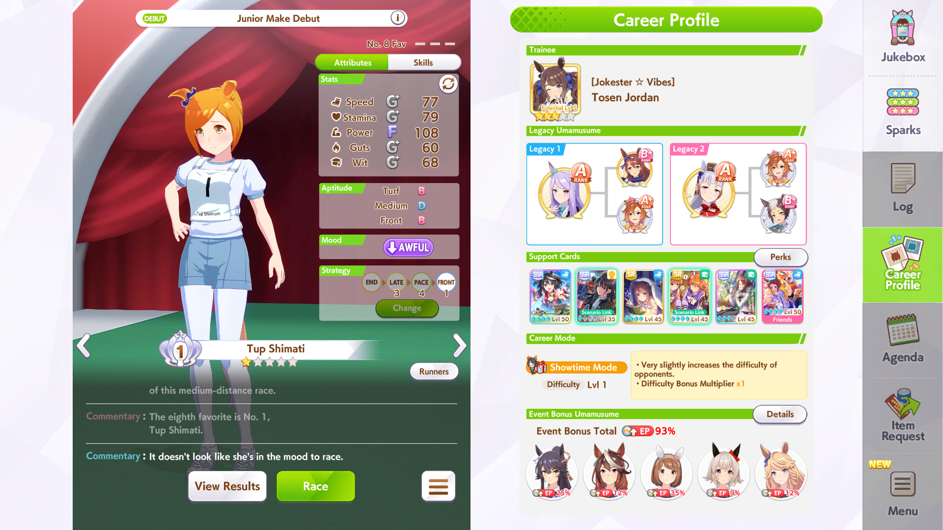 >>551360568Congrats to that Seiun but how the hell did she win with those stats? This game makes no sense...
