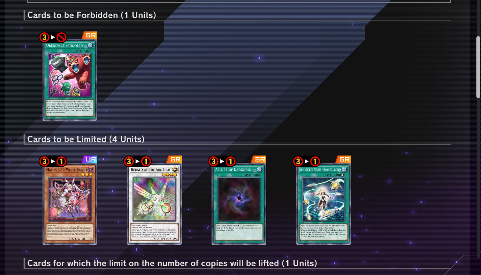 >no banlistis it really that hard to ban habakiri and chessy cat and white binder and skill drain and pre preparation of rites and herald of orange light and to limit mitsurugi prayers and mitsurugi ritual and to unlimit wanted?