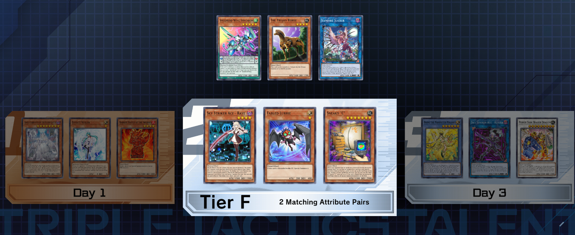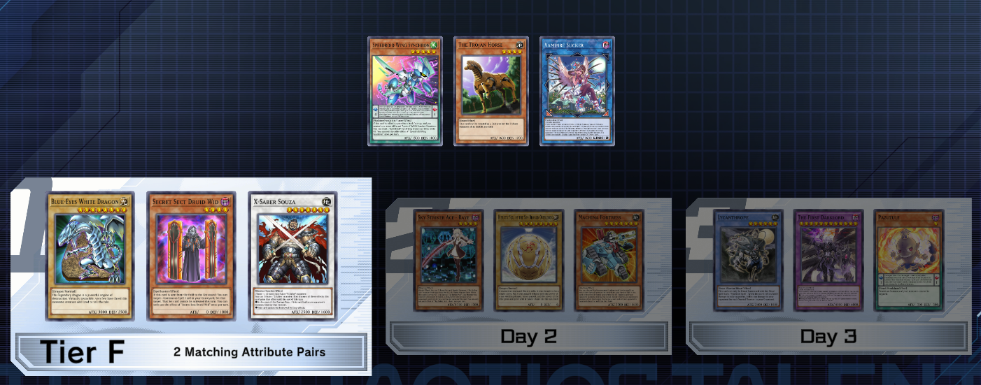 >>551490469Trojan Horse is foreshadowing a janky archetype built around putting all the og monsters that could be used as 2 tributes for their attribute into a giant fusion monster using all of them as material that lets you tribute it for the tribute summon of 5 monsters of different attributes from your deck at the same time.