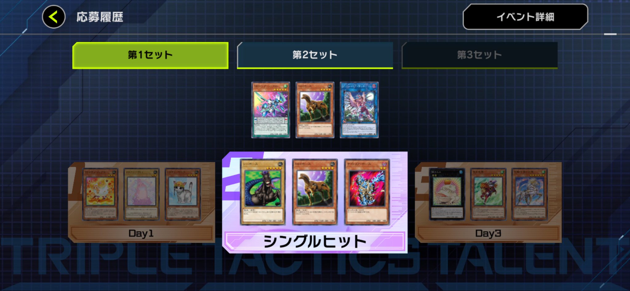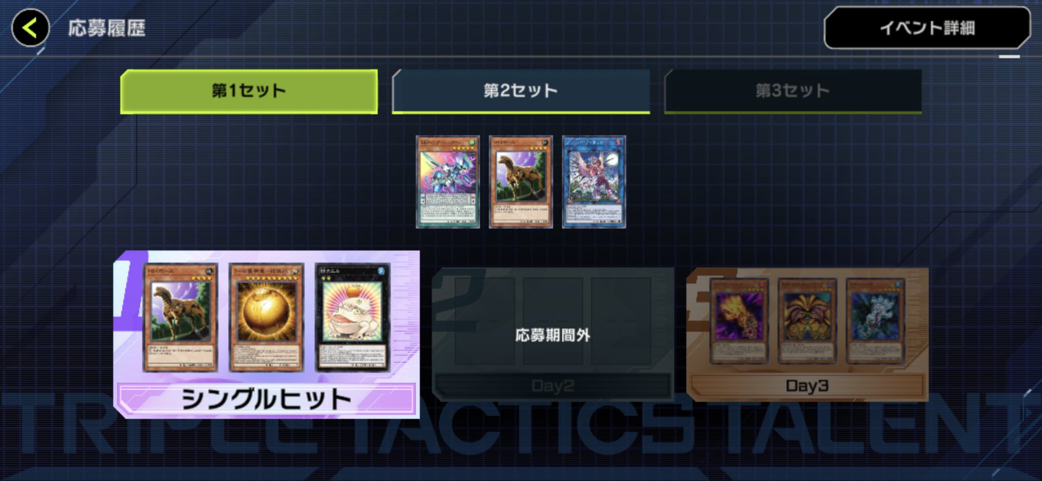 Does the triple tac 'match 2 / match 3 cards' thing pull once against all nine selected in a set, or three times for each daily selection in the overall set? Because the odds of hitting all three seems ASTRONOMICALLY small if it's not out of the full nine