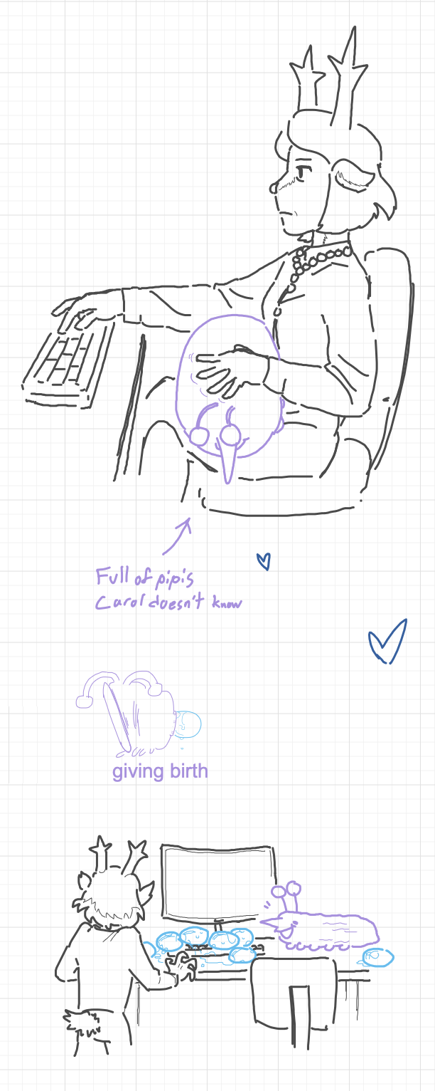 I never realized it before, but I'm glad that all of the pippins have a design that everyone can agree on. They're simple to draw and it's easy to tell what their outfit looks like.unlike a certain thread oc...*cough* *cough*
