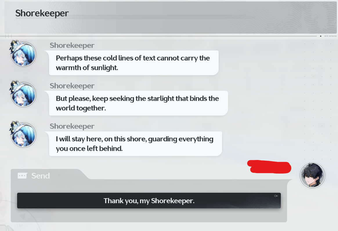 >Just like 2.0, Shorekeepr gets sad at sending (you) to a new missionNo wonder she is the real wife