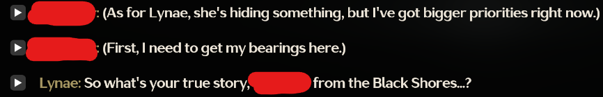 >>551388434they pulled off the duplicitous lying whore pretty well with lynae at the beginning of the story quest