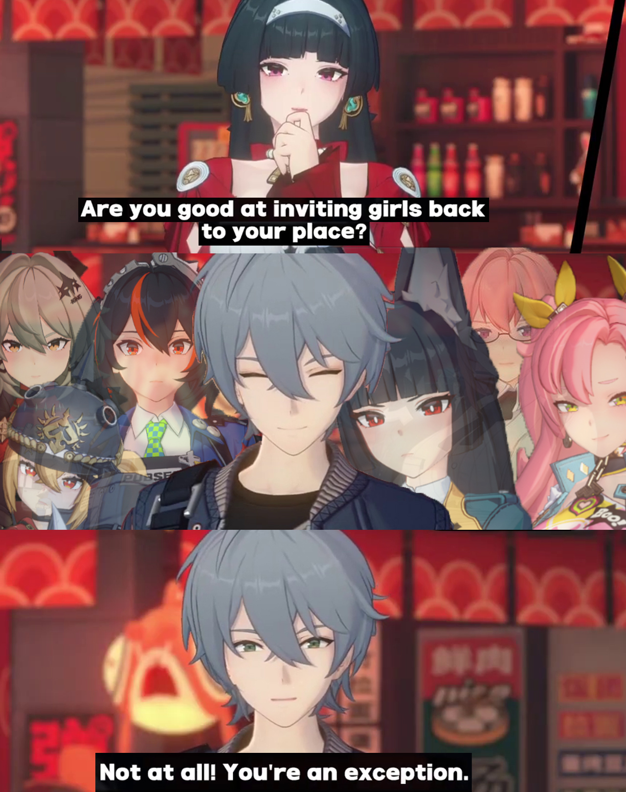 I'm sorry guys I tried, but I can't take zzz's story seriously anymore. Every story ends up being the same with no stakes and with the good guys winning at the end like always. The so-called "trauma" every character experiences is done off-screen it feels really hard to empathize with them. I have no idea how other gachas do it, but a story where you can't feel any tension whatsoever is not a good one no matter how you spin it.
