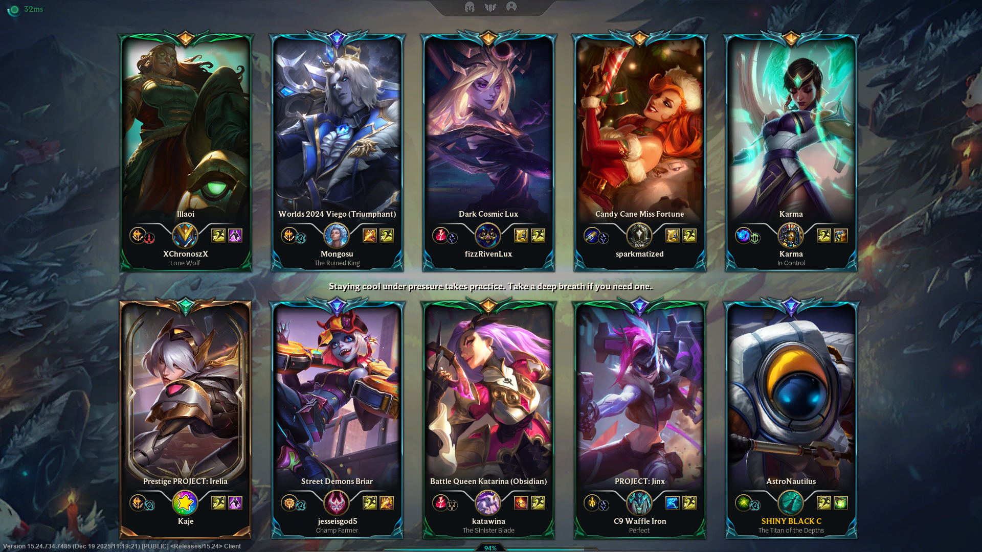 Merry Phreaksmas editionPrevious: >>551237643>/lolg/ leaderboardhttps://dpm.lol/leaderboards/2f32736c-e08f-4f2b-aae6-3f3326cabd9b>Official Wiki, Patch Notes and PBEhttps://wiki.leagueoflegends.com/en-us/>Builds/Account Statshttps://u.gg/https://www.op.gg/https://lolalytics.com/>Model Viewerhttps://www.modelviewer.lol/lolg/ OP pastebinhttps://pastebin.com/8xZvBfnZ