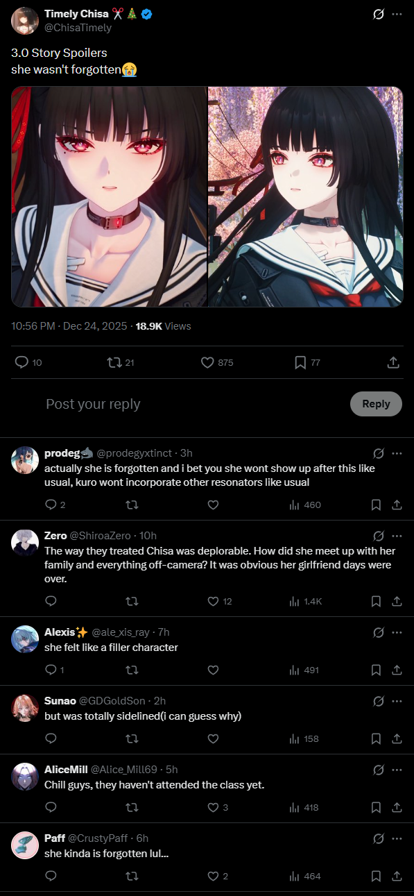 >nooo why didn't chisa show up and solo the worm during lynae's debut??? we should be like HSR and make herta job the day her banner drops!!!