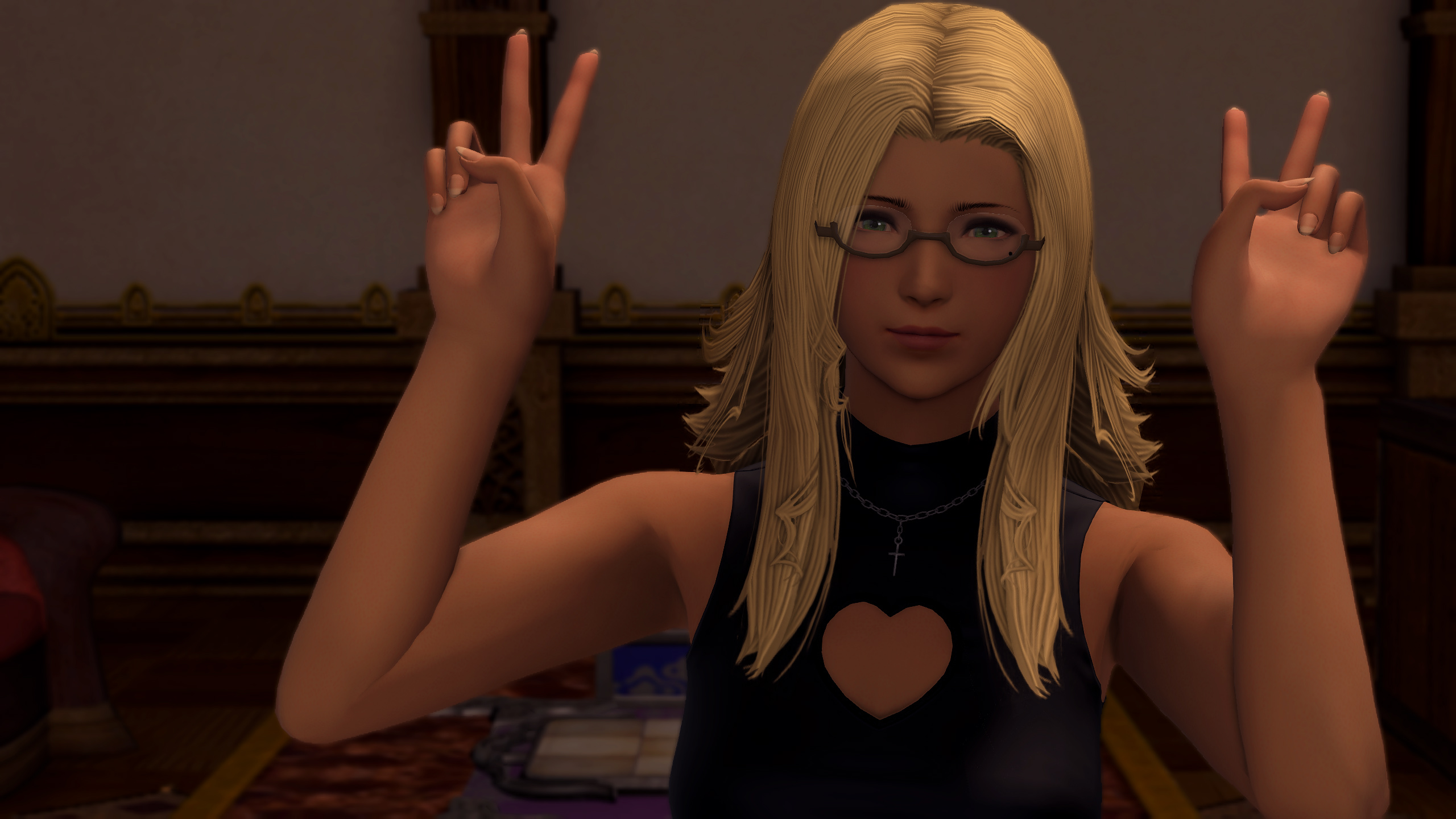 I wonder if we eventually fight her, and if so, whether she takes her glasses off first.