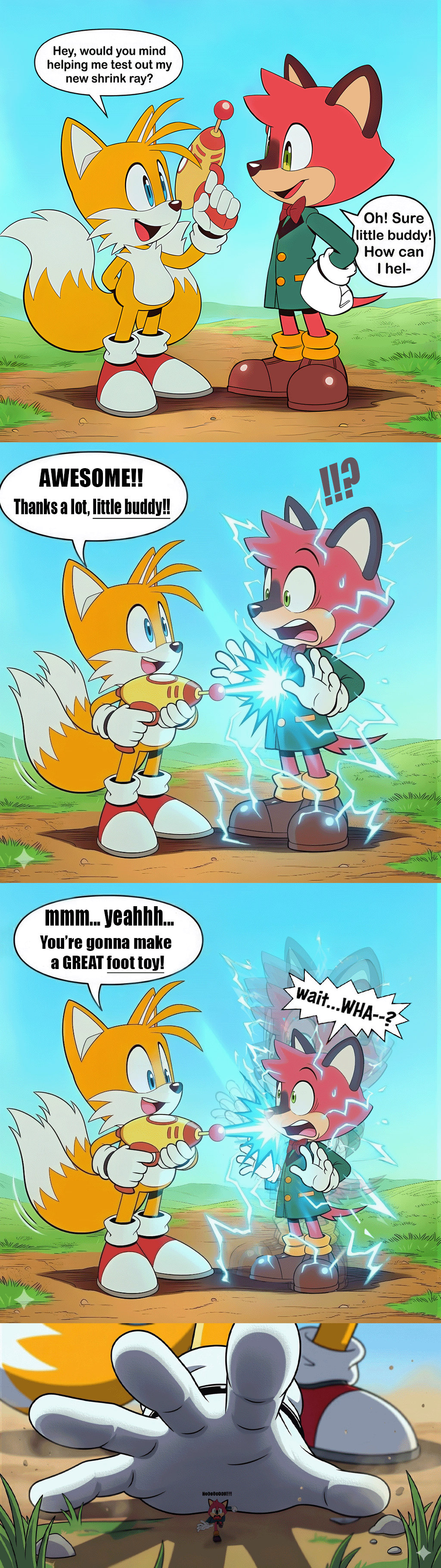 Tails is not Eggman, Tails is not evil, stop obsessing over Tails being "like Eggman", stop trying to make that a thing. He's a good kid. Let him be a good kid. Geez.