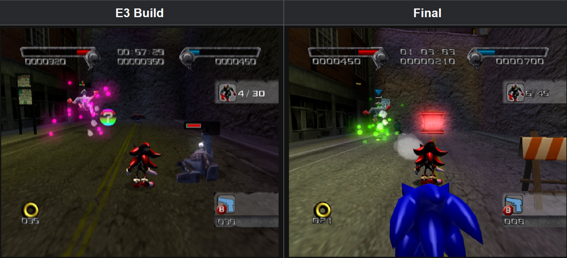 >>551507109>-The Spin Dash is extremely weakIt's still nothing special in the final>-The Route Menu is inverted, with Hero paths going up and Dark paths going downAlways wondered why it wasn't like this>-The unused radar asset, previously only spotted in an early screenshot/mockupCatastrophic it didn't make to final>-Massive soundtrack differences. Some tracks contain lyrics, such as "Tight like Denims on a Fat Ass."lol-Voice clips contain leftovers of a more 'mature' Shadow:-The Black Arms create a squirt of violet-red when hurt in this build, compared to the green in the final gameAll sound cool