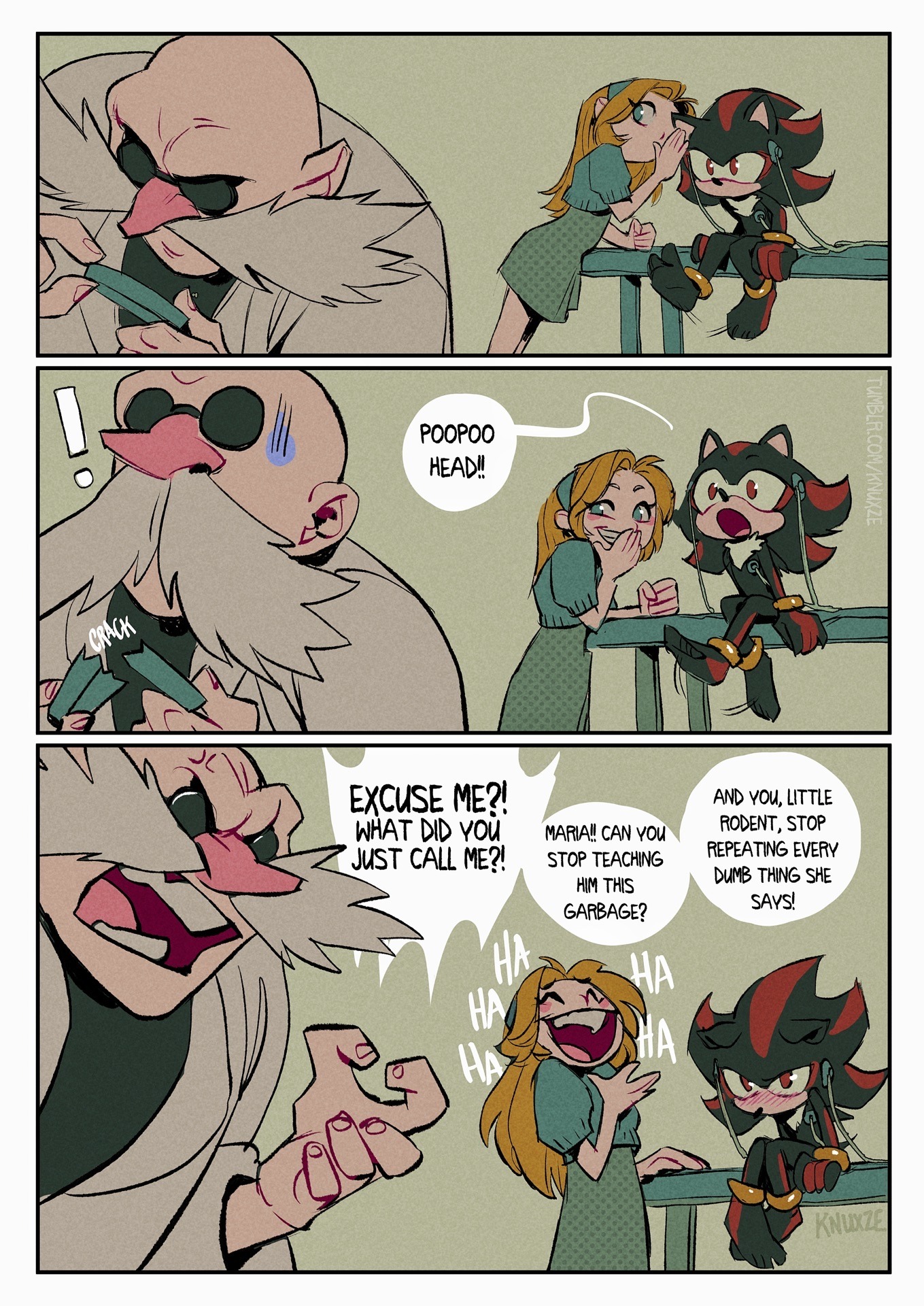 >Maria: Oh, Shadow! Thank goodness you're here, I've been looking for you. So, don't tell anyone, but I found out some new words to use...