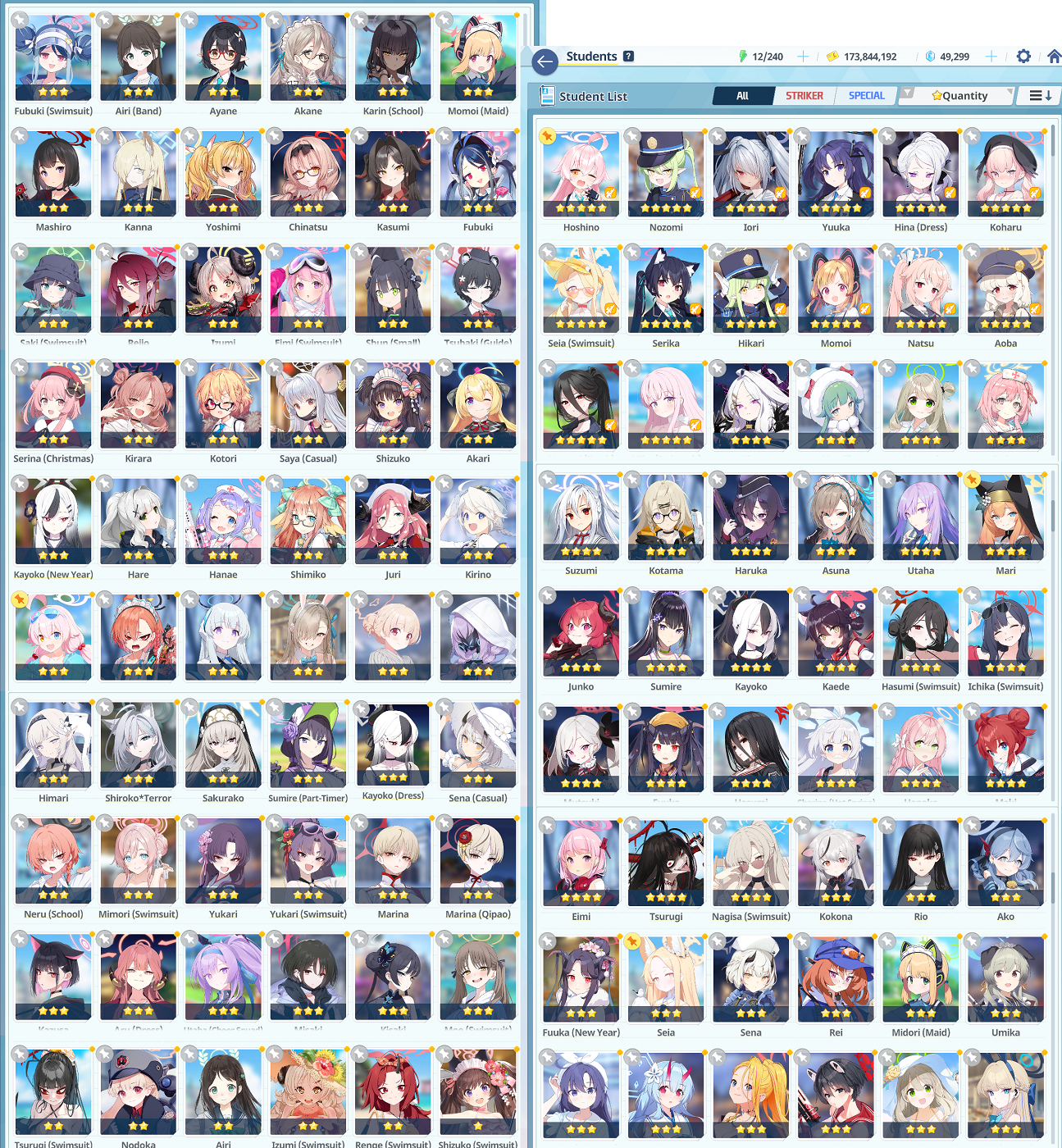 >>551495309Only students I have with UE above UE30 are Hoshino, Iori, and Yuuka at UE40 with track Hasumi at UE50. I just got to level 90 yesterday so I have started to want to do actually content instead of coasting trying to get to this point, but I have zero clue about building anything and just stare in awe at what people do with their stuff. Even on the current Total Assault I don't even bother trying anything extreme although I feel that I could maybe eek out a win on insane. I really am at a point where I just am dying for mats and activity reports and just want to see what I could upgrade while I build up those things