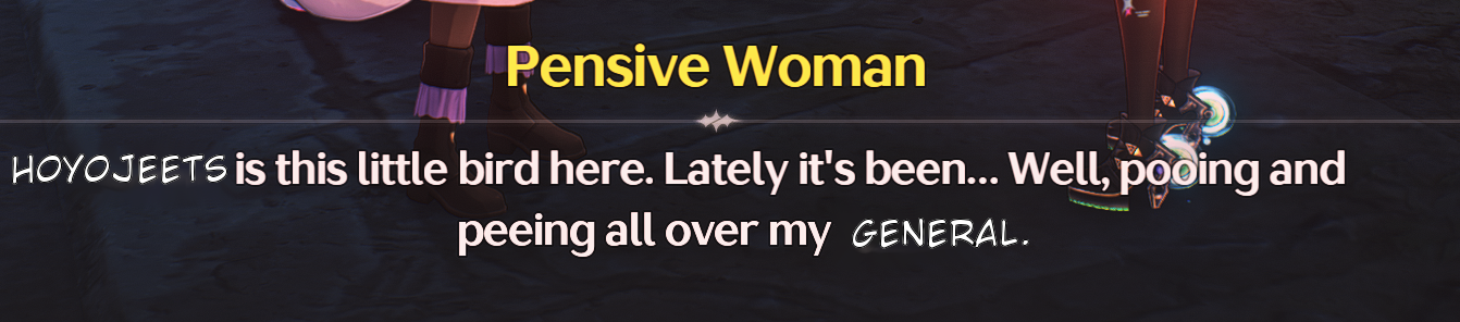 >>551525223>just repeat the emotional storybeat but watered down, I wasn't paying attention lolRub your two braincells together and THINK, REALLY THINK why Kuro included a "welcome back" by her parents in the big final cutscene of Honami as pay off for her arc. It's almost like they wanted to include that bit in the part of the game where they could do it with some more quality and impact than a npc conversation on the side of the Lahai Roi and Lynae introduction.