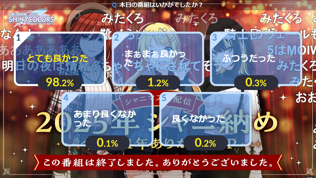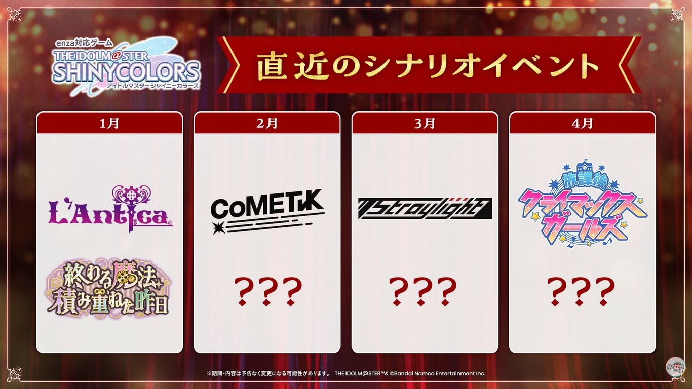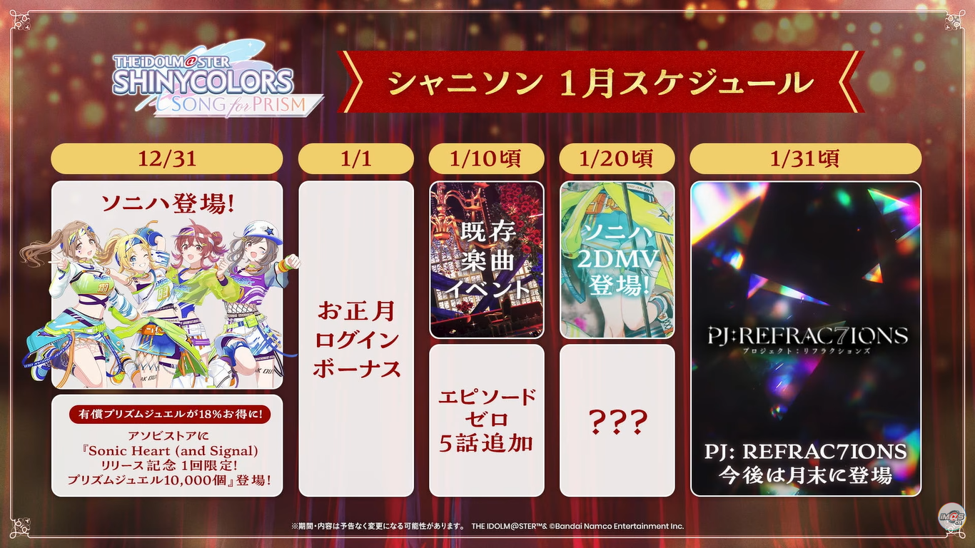 TOMORROW:Dec 27th, 5:30PM JST: Shiny Colors 283 Production MUSICAL Performance -Veil of Order- Abnegatio (I)Dec 27th: VL at Marinasu's 7th Anniversary Live: >>535659914Dec 27th to Jan 12th: 765PRO ALLSTARS 2025~2026 Big Year-End Party x New Year's Party in KOTOBUKIY@: >>539654907 >>547789282 >>550671047