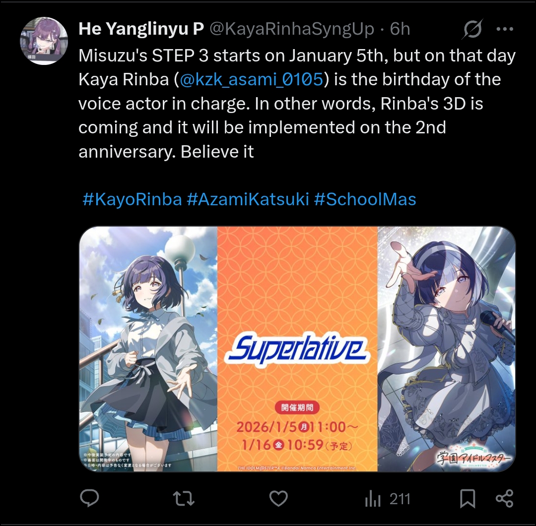 https://x.com/saneishobo/status/2004394236842856878Imas collaboration soon!