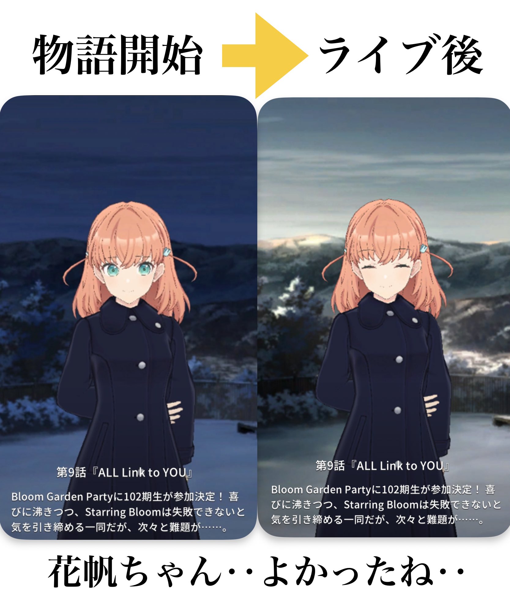 >>551902347i watched a lot of subbed hasu and niji movie 1. year 3 of hasu has been very good. much as i love the 102s, putting them on ice for half a year was necessary to let the others shine. as long as they were around the other six couldnt quite escape their shadow, which was more harmful for the 104s that had more characters and more plot lines to compete for screentime with. writing out two of the most popular characters, and tsuzuri, was a bold move and probably a financial mistake, but the rest of hasu benefited for it. ceras and izumi have been good additions to the group with a good dynamic that would not have been possible without the quantity and great length of episodes gacha allows.niji movie 1 was decent but i hoped for more. this felt like the time for the staff to be ambitious, but they couldnt have played it safer if they tried. it looked much better in motion than in the early promo shots.