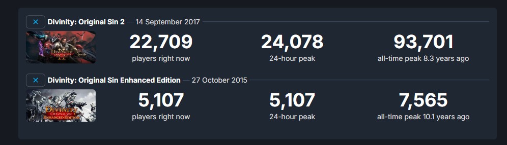 >>551797071bg3 rarely goes on sale & divinity is the talk of the town, even the divinity games got a bump in player count
