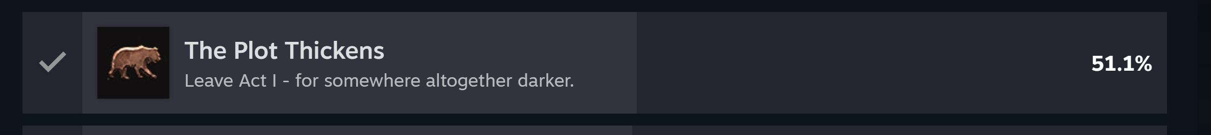 My dumb ass has been checking things off, like: Okay, I've done all the major/minor quests in the grove, I've done Waukeen's Rest and the Risen Road, I've exposed Kagha and and I'm about to take care of Auntie Ethel. I'm almost done Act 1!I had to remind myself that I've got to do the Blighted Village, Underdark, and Monastery before I'm done. The first act of this game is larger than other, full games!