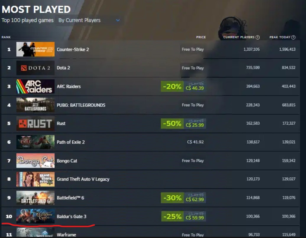 Bro what is up with this game. Just passed 100K concurrent. And is in the top 10 globally in sales.